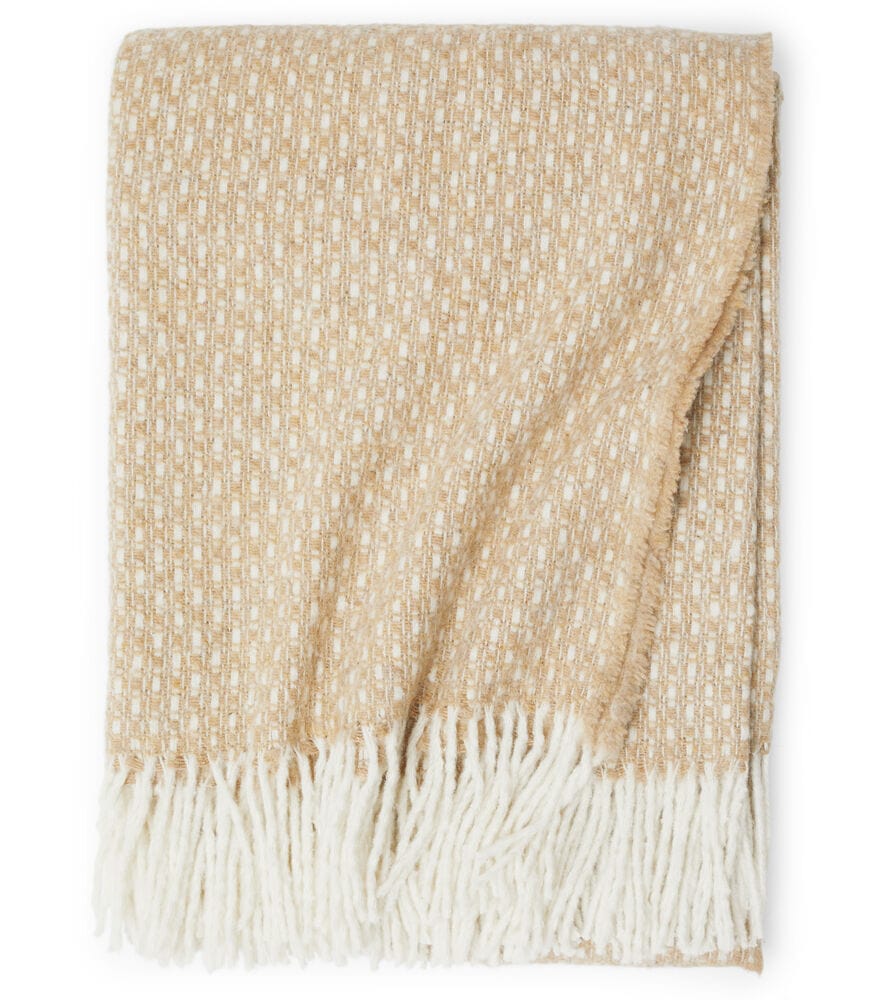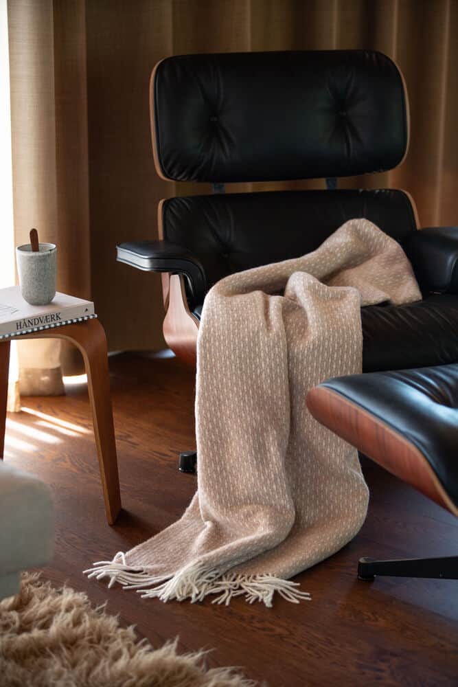 Mjuk och skön filt med fransar vävd i värmande ullmix. Tidlös och elegant design som enkelt ger liv åt en soffa eller säng.