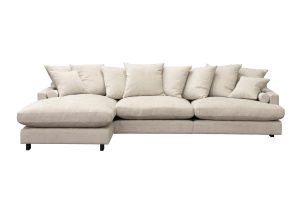 Lyxig soffa med sittdynor fyllda med silikoniserad fiber och dun/fjäder.Välj höger eller vänster divan