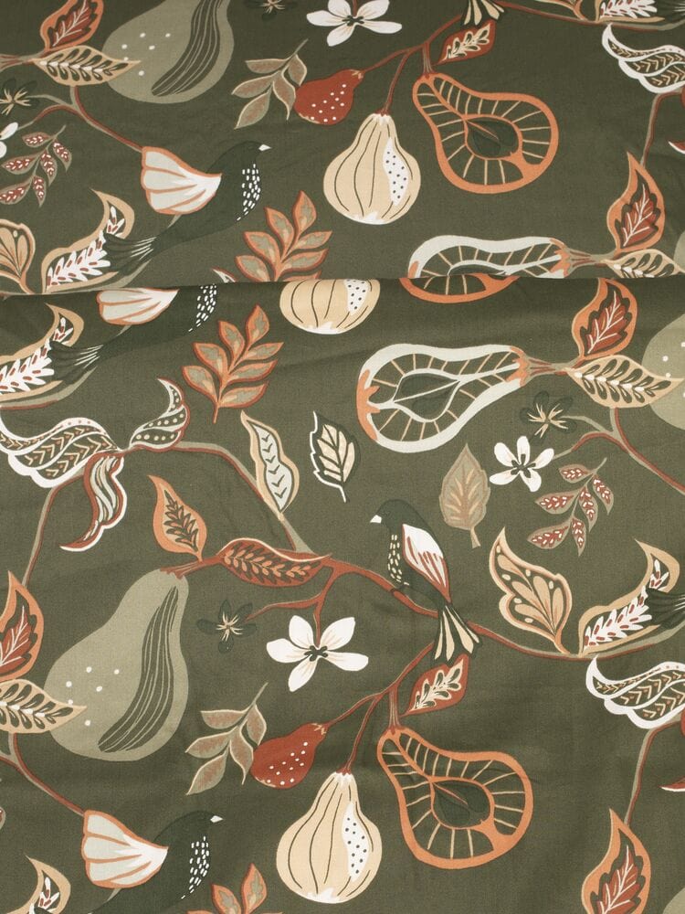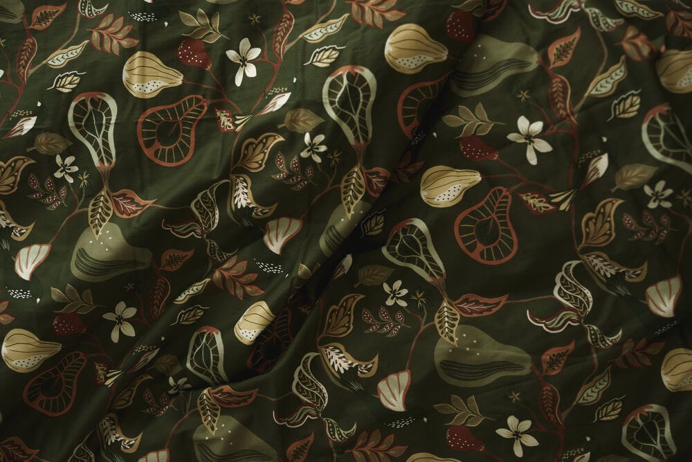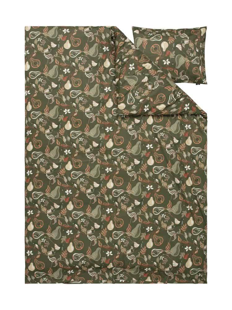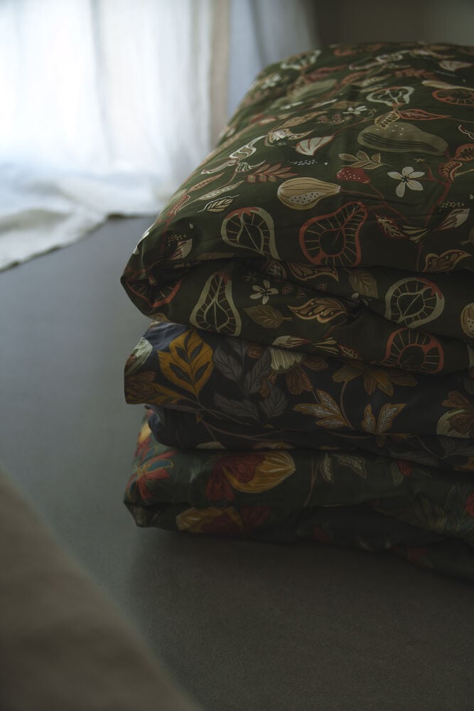 Bäddset i skön satin med hantverksmönster inspirerat av Josef Frank, som ger en mysig och robust känsla i sovrummet när vi vill kura ihop oss under höst- och vintermörkret.