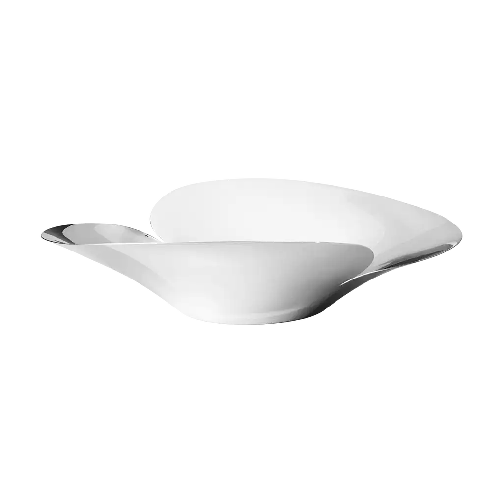 Denna eleganta mittpunktsdekor hyllar de definierande formerna i Helle Damkjærs Bloom-kollektion – mjuka, organiska former inspirerade av en blommande blomma. Tillverkad av spegelblankt rostfritt stål gör den ett iögonfallande intryck oavsett om den är tom eller full, och erbjuder ett tidlöst tillskott till vilket utrymme som helst.