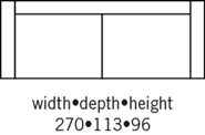 Denna soffa är en 3,5 sits och har måtten 270cm*113cm*96cm (se produktblad)