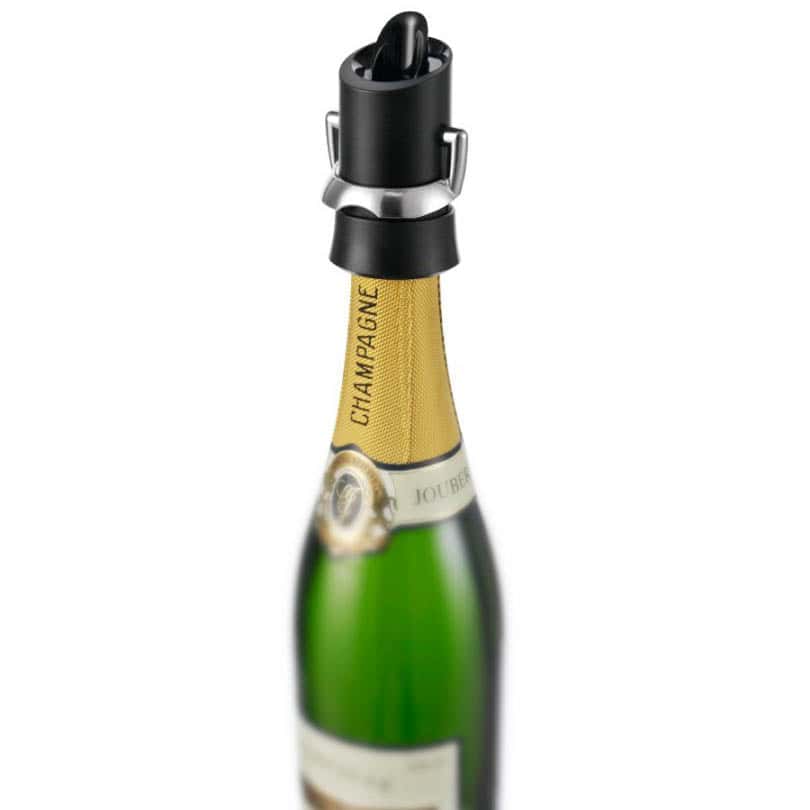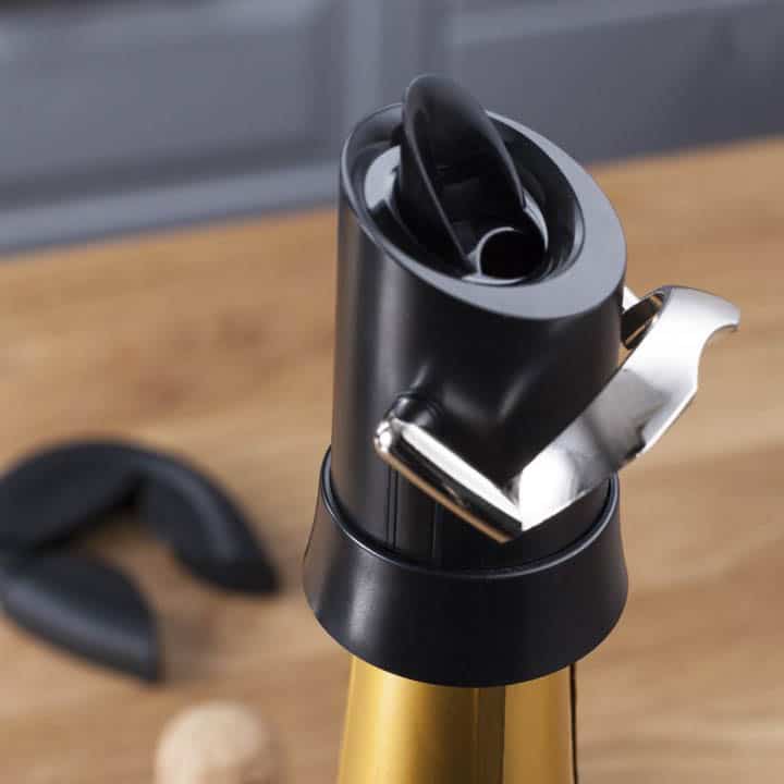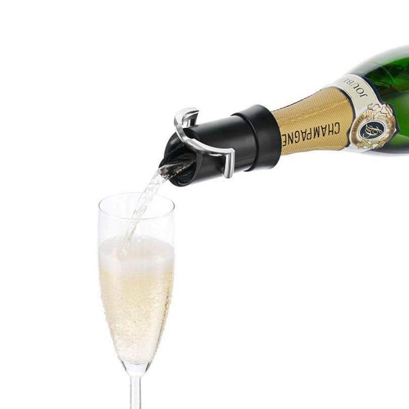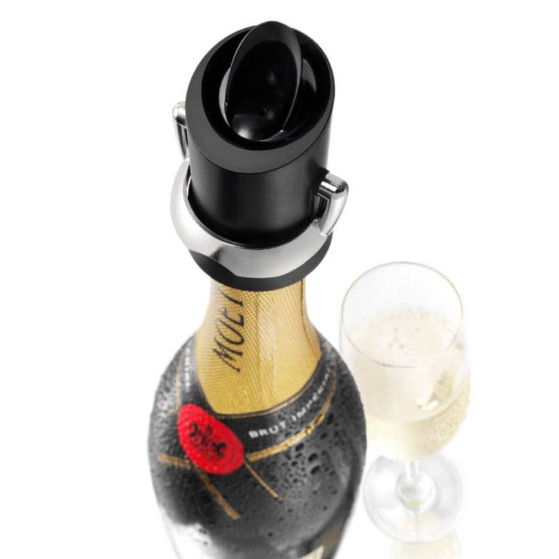 Champagne-förslutare hjälper dig att behålla champagnebubblorna och minimera oxidationen i en öppnad flaska. När den är fastlåst i flaskan, kan du öppna med spaken och servera droppfritt och stänga igen för att hålla champagnen fräsch.