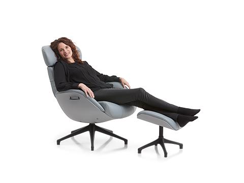 Chester är designad med en gasfjädermekanism som låter dig ändra positioner smidigt och utan ansträngning. Fotstödet ger dig en lugn plats att koppla av och varva ner. Nackstödet är justerbart i höjd och vinkel, för att få den bästa positionen för att läsa, titta på TV eller koppla av. Skalet på Chester-stolen finns som helklädd. De eleganta aluminiumbenen finns i svart eller polerad aluminium.
