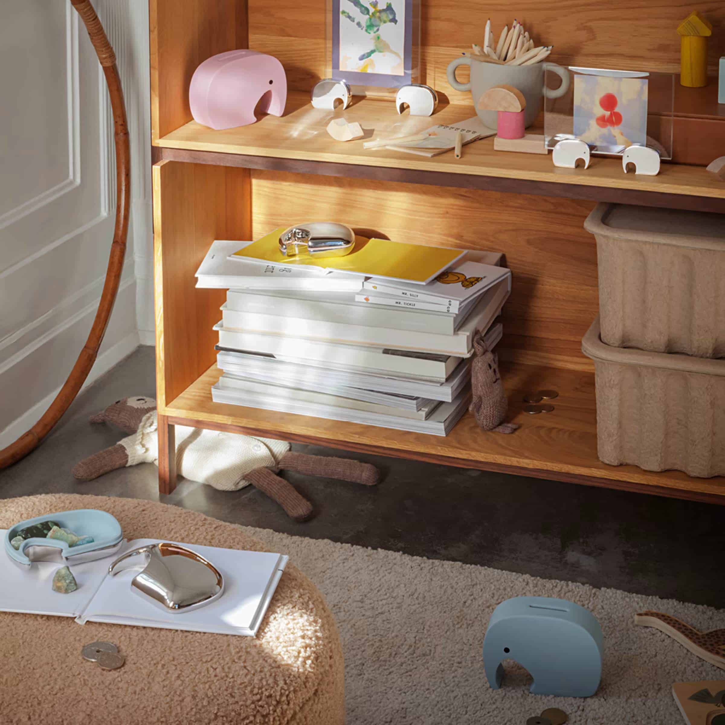 Denna lekfulla ask är perfekt för förvaring av mindre föremål och är designad i Georg Jensens ikoniska elefantdesign. Den är tillverkad i putsat rostfritt stål och insidan är täckt med ett lager ljusblått silikon för att förhindra repor och säkerställa slitstyrka. Silikonbeläggningen kan enkelt tas bort för noggrann rengöring.