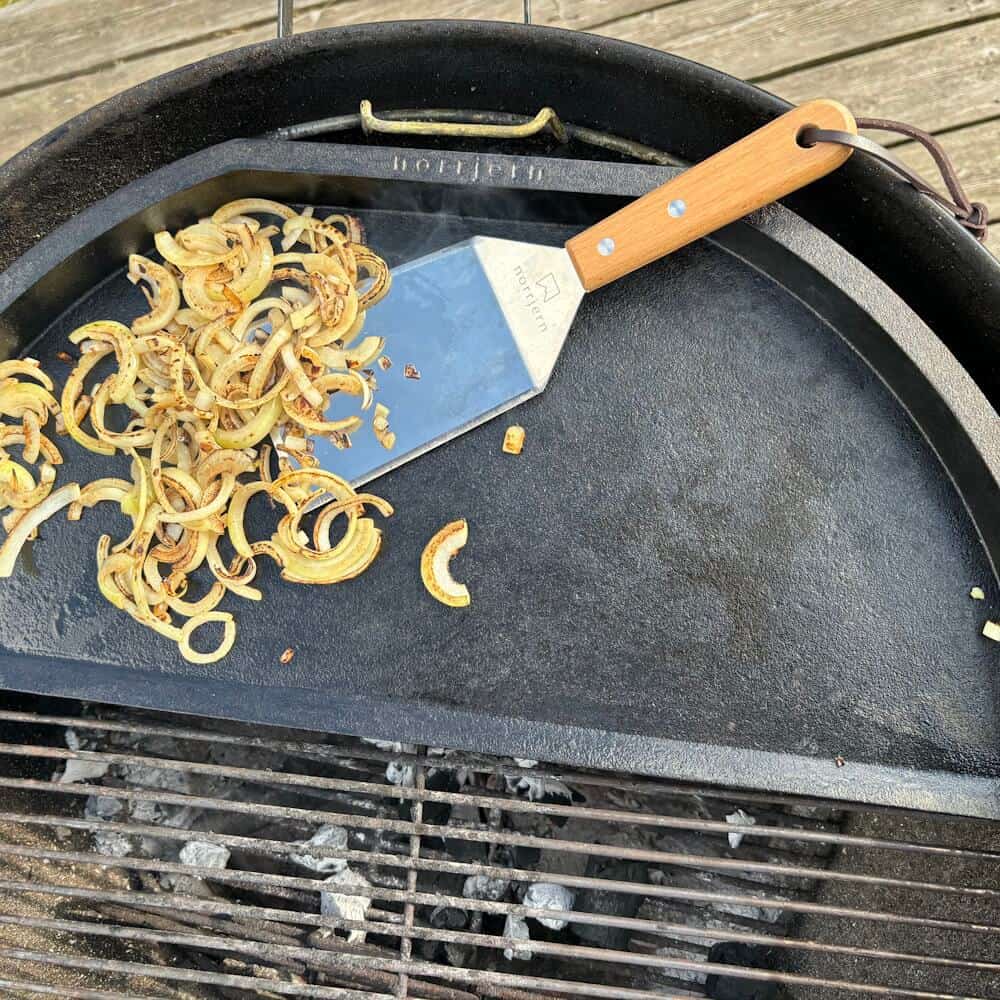 Hamburgerspaden passar lika bra på grillen som på stekbordet och är det perfekta redskapet till BBQ-festen när mycket mat ska tillagas.