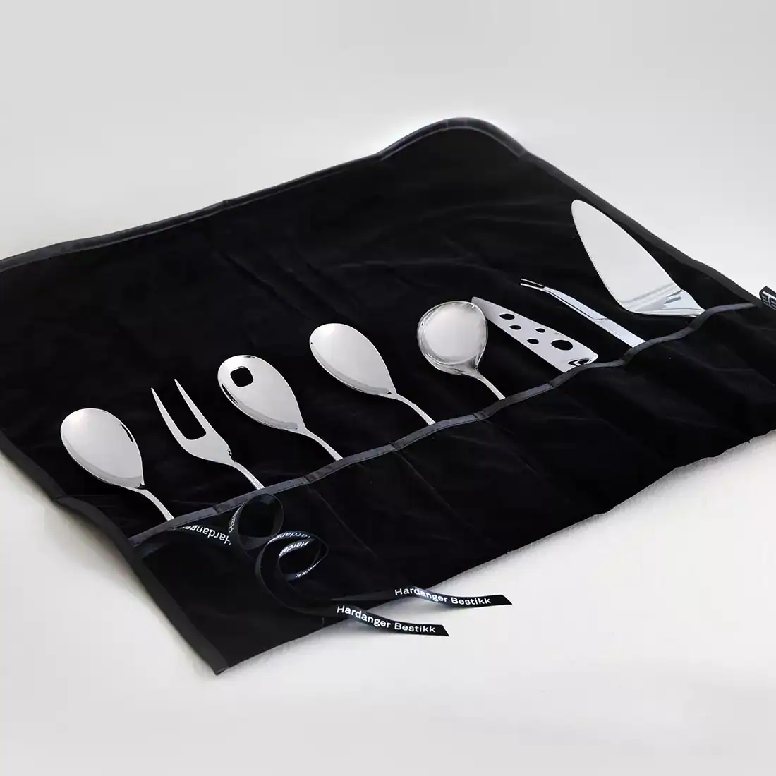 Smart förvaring till dina serveringsdelar. Praktisk och fin besticklinda som gör att serveringsdelarna håller sig fina. Besticklindan är gjord av ett mjukt syntetiskt material som liknar velour tyg. Passar alla Hardanger modeller.