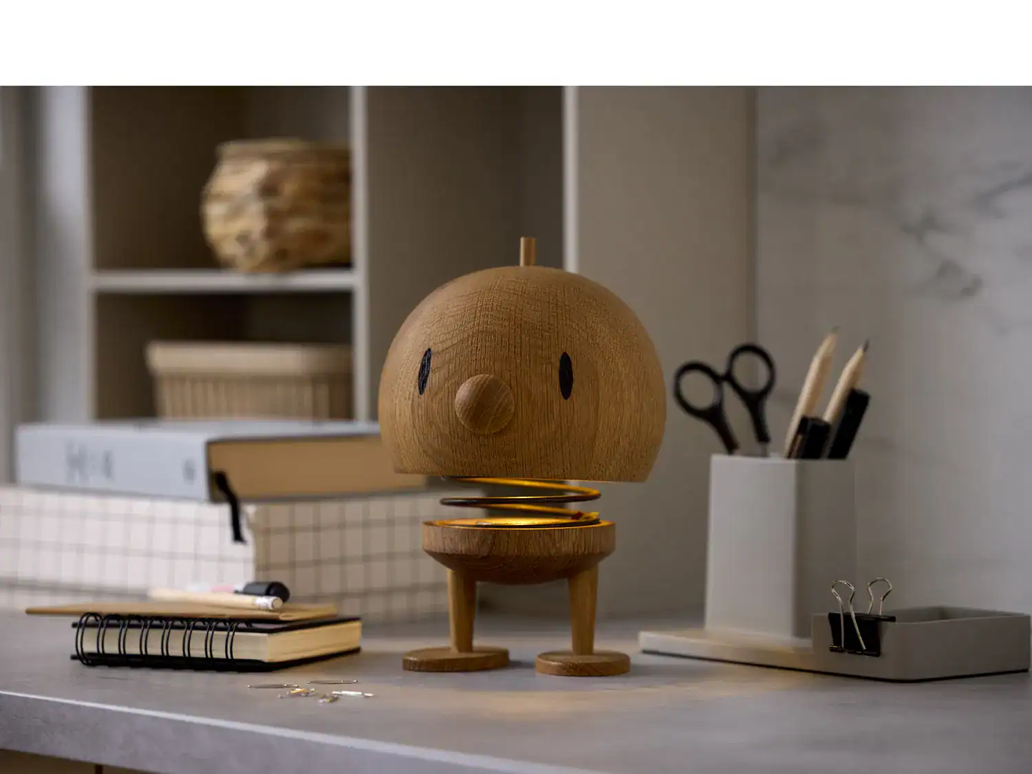 Låt den vackra Hoptimist LED-lampan fylla rummet med ljus, färg och mysfaktor var du än placerar den. Oavsett om du flyttar den till skrivbordet, favorithörnan eller nattduksbordet kommer lampan att skapa glädje i ditt hem – utan krångel med sladdar. Lampans touchfunktion gör det enkelt att tända, släcka och justera ljusstyrkan med en enda beröring. En lätt tryckning på ovansidan tänder eller släcker lampan, medan en ihållande tryckning justerar ljusstyrkan så att den passar dig. Efter 4,5 timmars laddning är lampan redo att sprida glädje i upp till 8 timmar, beroende på vald ljusstyrka. Laddas med den medföljande USB-C-kabeln. Produkten är tillverkad i FSC®-certifierad ek (FSC-C166612). H 15 cm, D 10 cm Specifikation för lampan Laddningstid: 4,5 timmar Funktionell tid: Max. 8 timmar Justerbar ljusstyrka USB-C-kabel ingår Effekt: 5 W