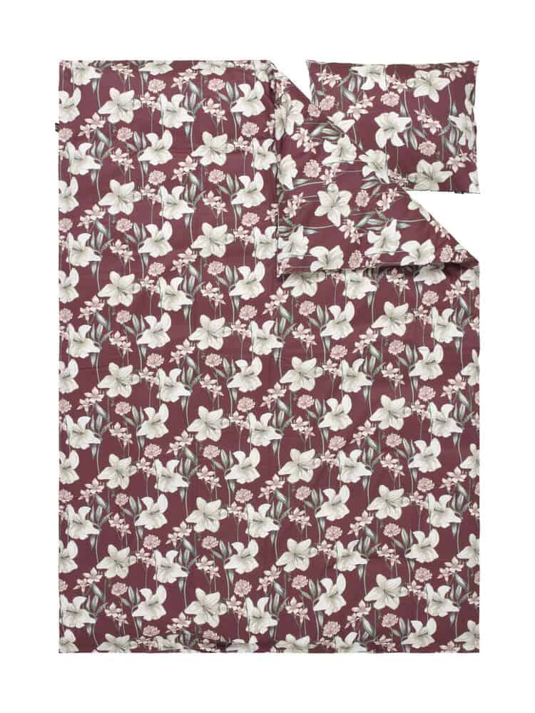 Detta bäddset kombinerar ett levande blommönser med en lyxigt len satinväv som smyger in en mjuk och inbjudande känsla i sovrummet. De milda färgtonererna och det harmoniska uttrycket gör det till ett självklart val för en ombonad och välkomnande säng.