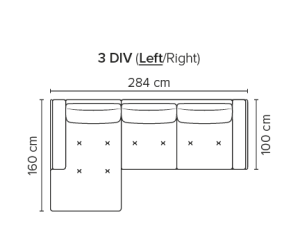 Leone 3 DIVAN VÄNSTER Fabric: Credo 01. Leg: 15, matte black.