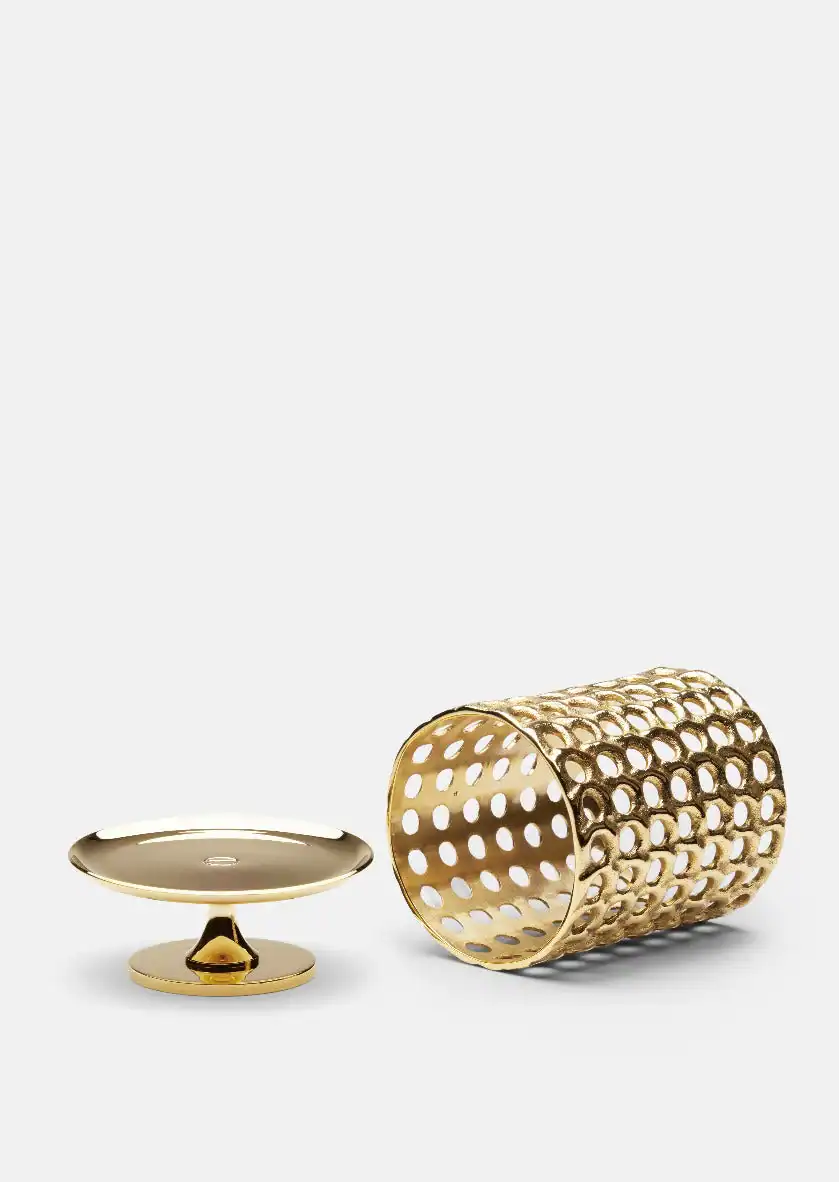 Pierre Forssell var verksam på Skultuna Messingsbruk som fast anställd designer mellan åren 1955-1986. Håltagningen på originalet skedde med svetslåga, på denna återskapade lykta skapas hålen vid gjutningen.