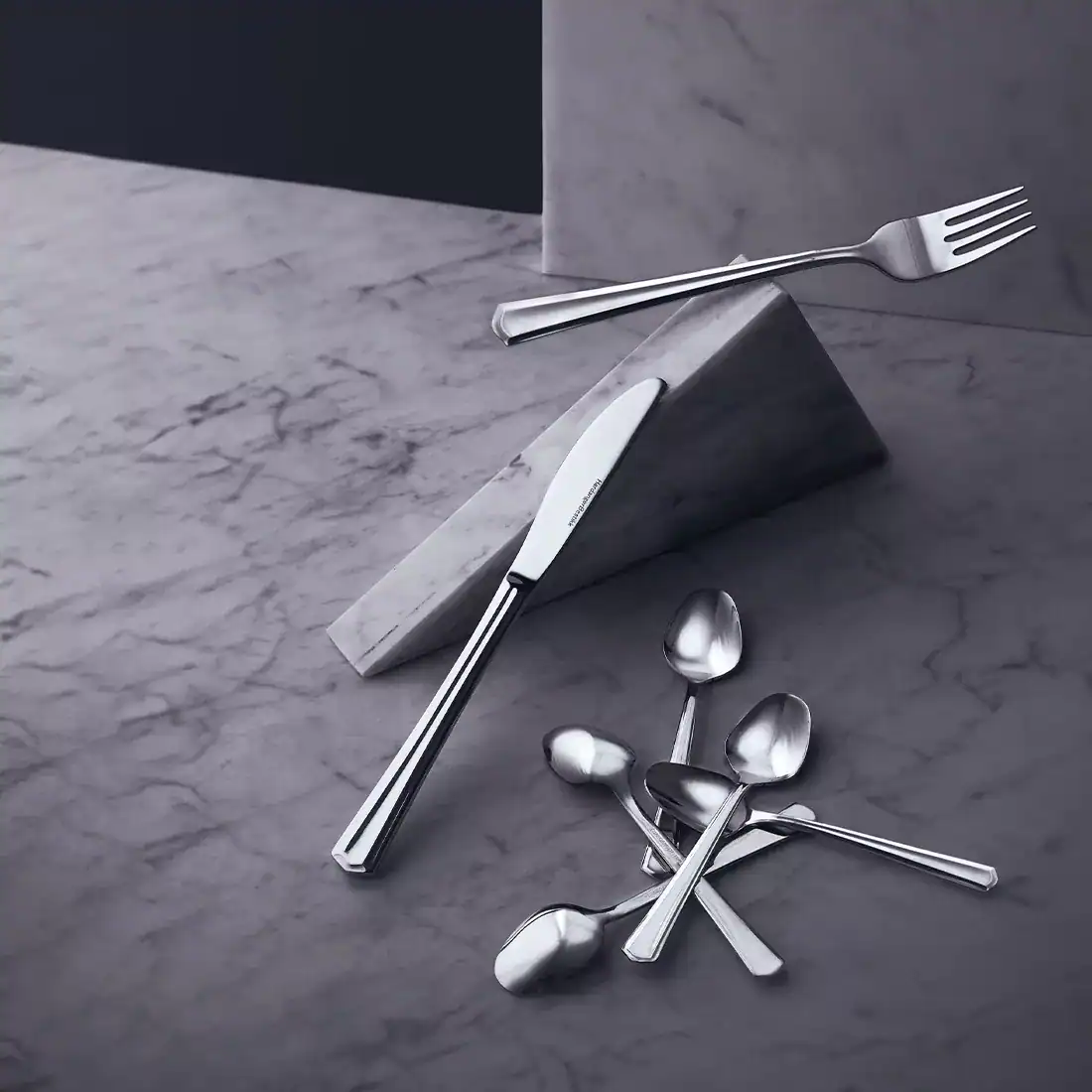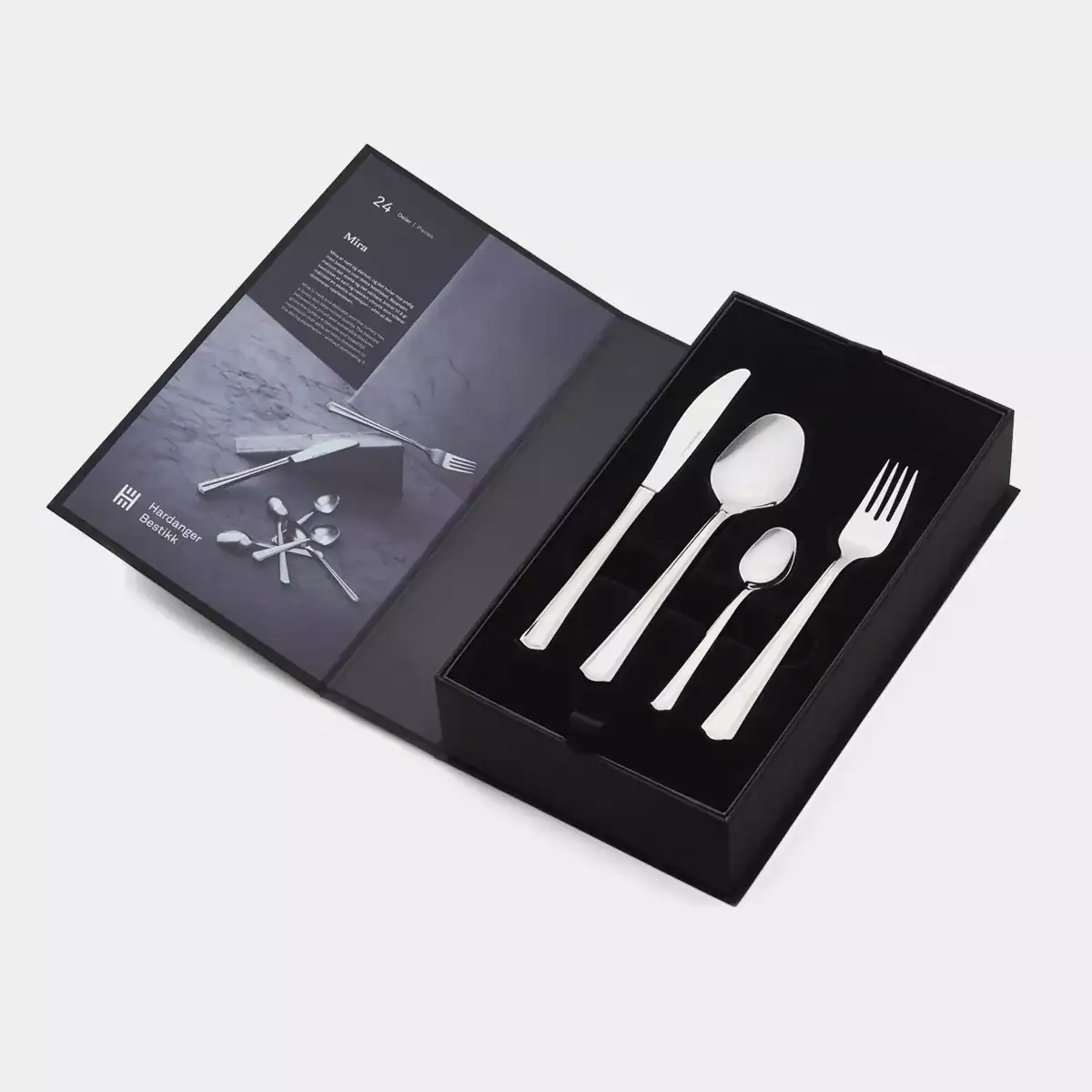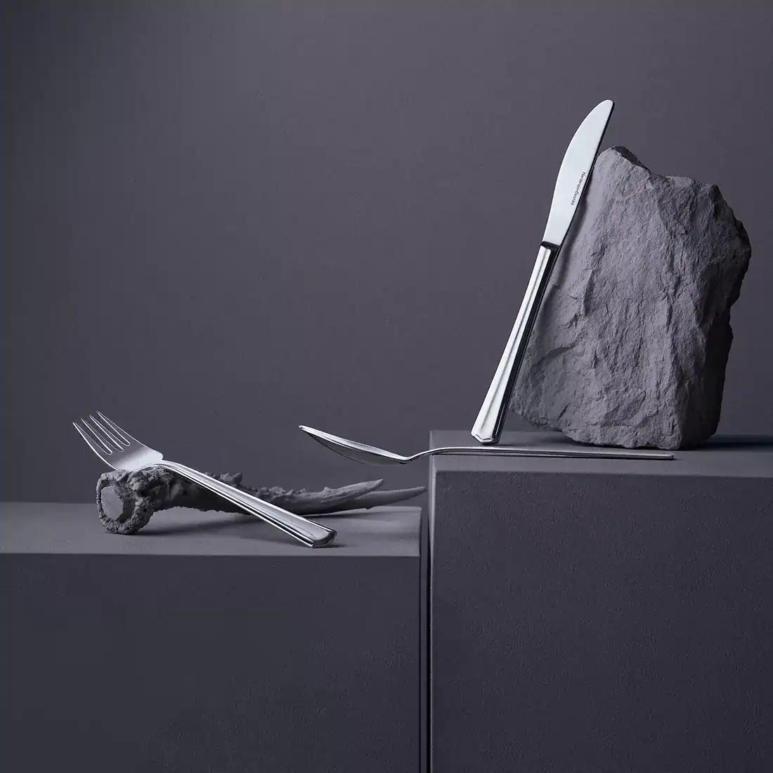 Designad av Odd Leikvoll 1986. Praktiskt, enkelt bestick med hög slitstyrka. Kort och lätt med hårda kanter. Levereras i presentförpackning.