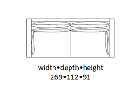 BREDD: 269 cm, DJUP: 112 cm i stommen HÖJD: 91 cm SITTDJUP: 60 cm SITTHÖJD: 52 cm