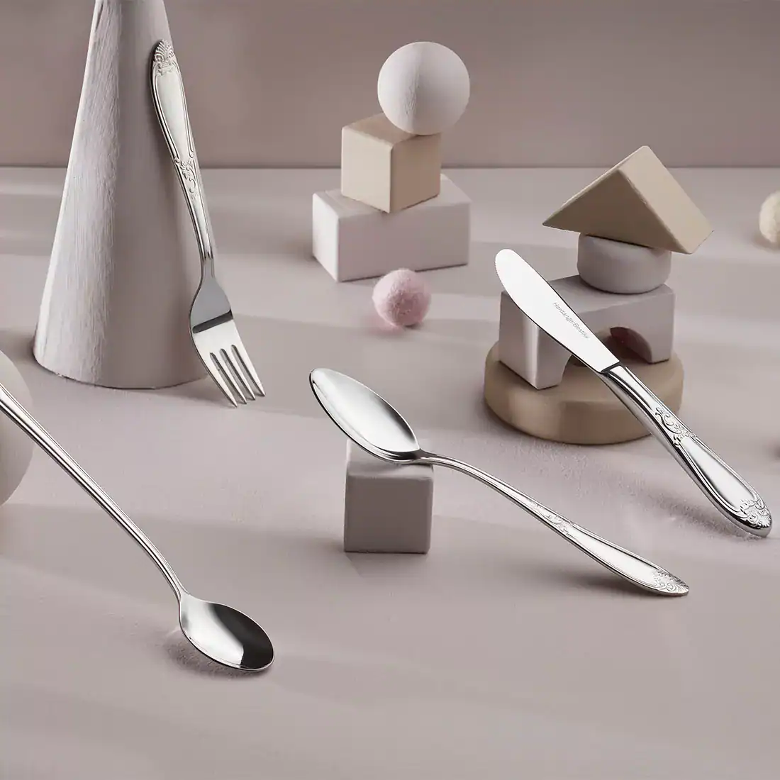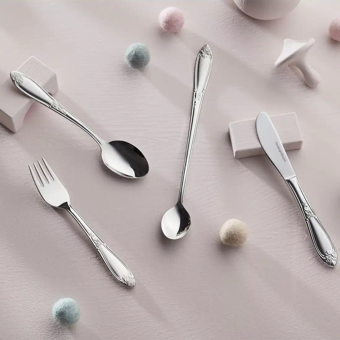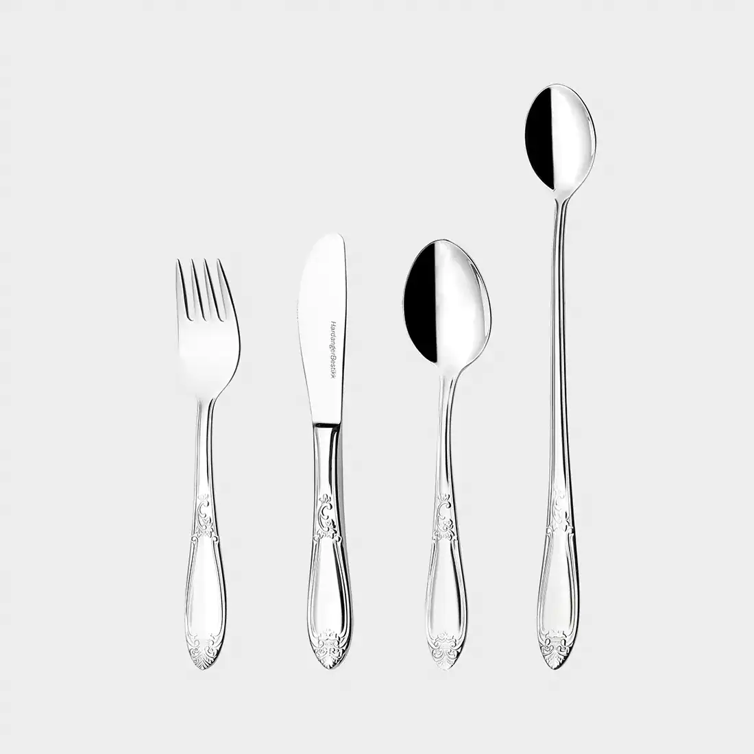 Barnbestick från den eleganta och högtidliga Nina-serien. Designat av Odd Leikvoll 1998. Barnbesticket är utformat precis som besticksetet är i serien, därmed blir barnen mer delaktiga och likvärdiga runt matbordet. Besticket har ett behagligt grepp och kommer att följa med barnet fram till de är 8-10 år. Levereras i presentlåda.