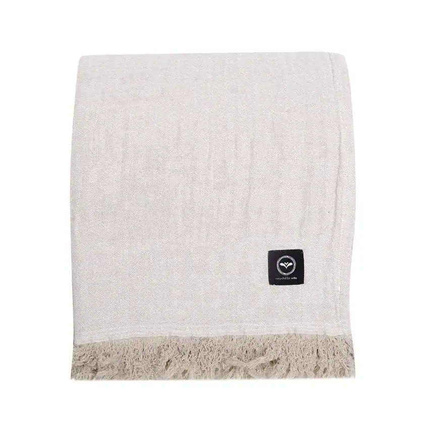Mycket snyggt överkast i fin Linne/Vit färg för dubbelsäng. Produkten är tillverkad i återvunnet material; en blandning av 80% återvunnen bomull och 20% återvunnen polyester