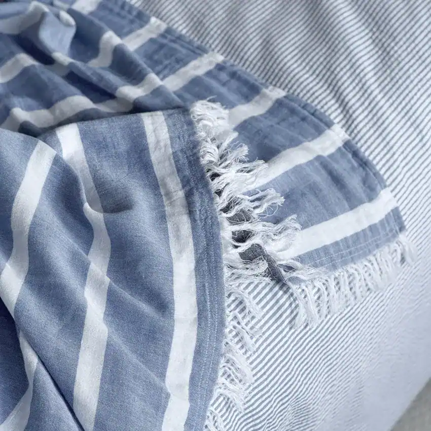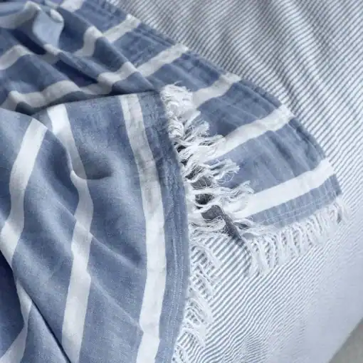 Ett riktigt Klassiskt randigt överkast i blått och vitt.
