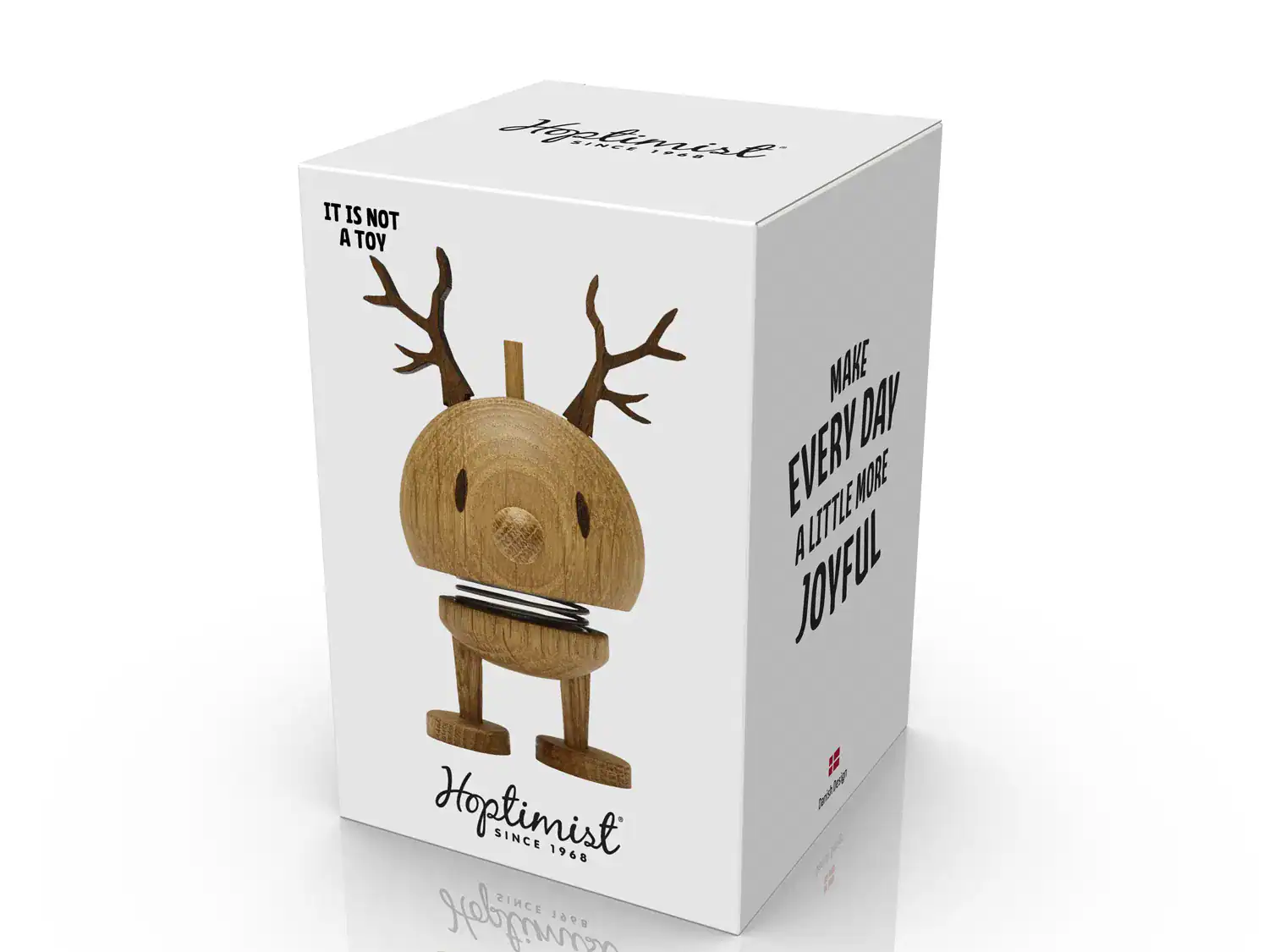 Julen är leendets högtid, och våra glada renar i ek kommer garanterat att få leendena att spridas under den glada högtiden. De är naturligtvis självklara som julpynt, men hornen går att ta bort, vilket gör att Hoptimisten kan stå kvar på hyllan året runt. Produkten är tillverkad i FSC®-certifierad ek (FSC-C166612). H 9,5 cm, D 5,9 cm
