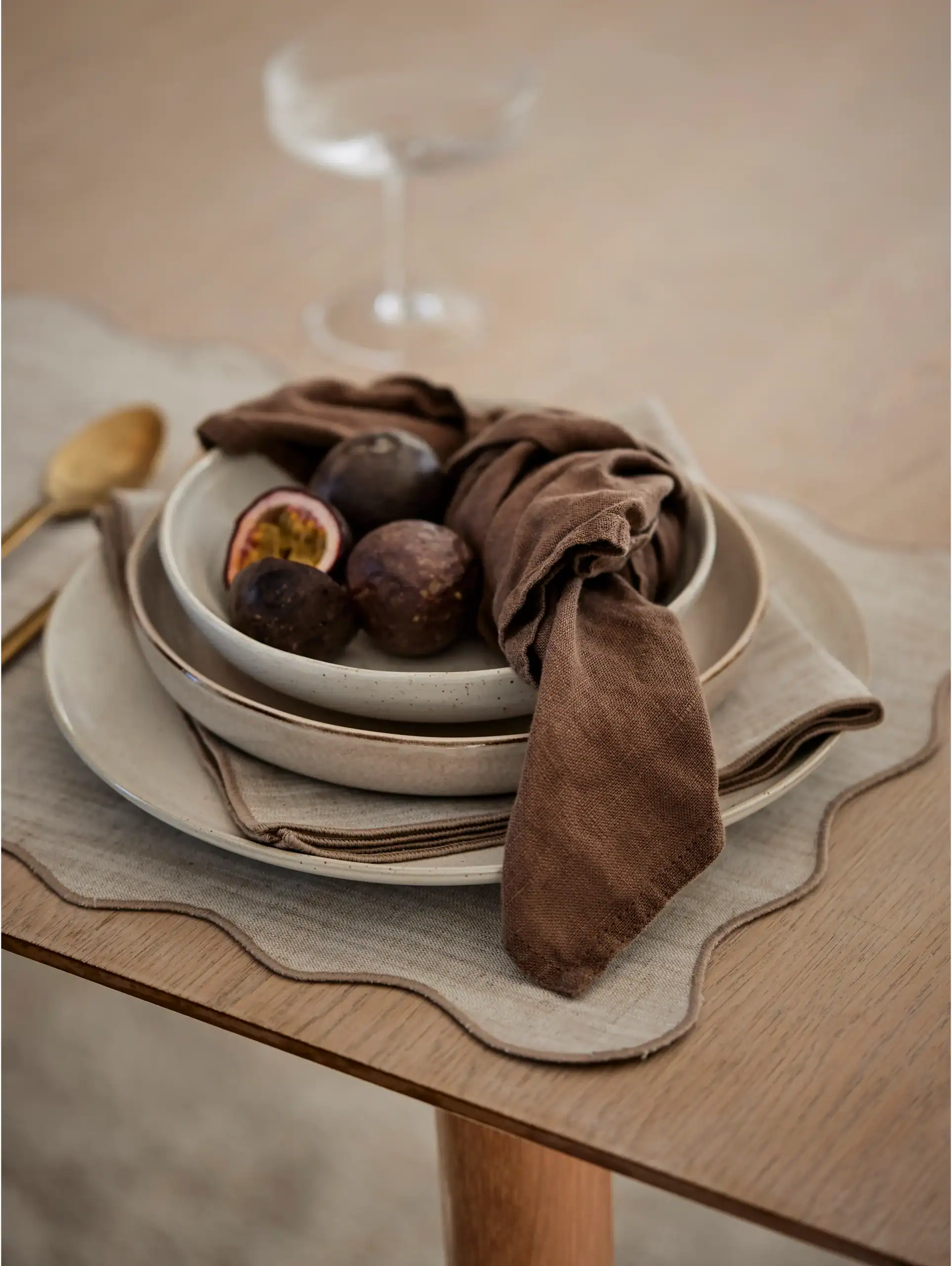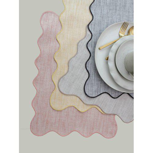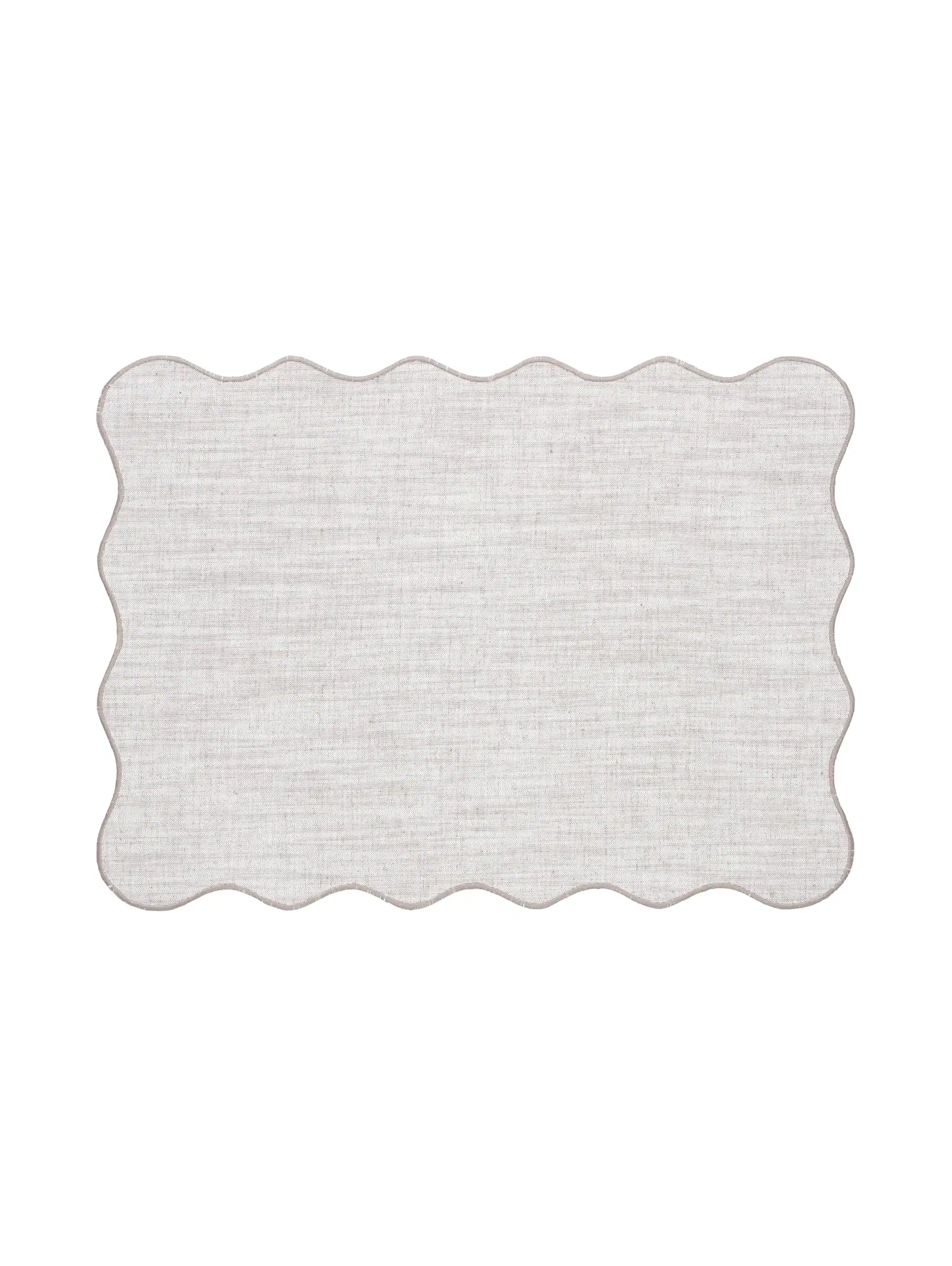 Placematta i bomull/linneblandning, chambraytyget ger den ett linneliknande utseende och har vågiga sidor och en beigefärgad dekorsöm längs alla fyra sidor. Storlek 35×45 cm. Produkten är certifierad enligt STANDARD 100 by OEKO-TEX®. Certifieringen garanterar att produkten är testad och fri från ämnen som kan vara skadliga för hälsa och miljö.