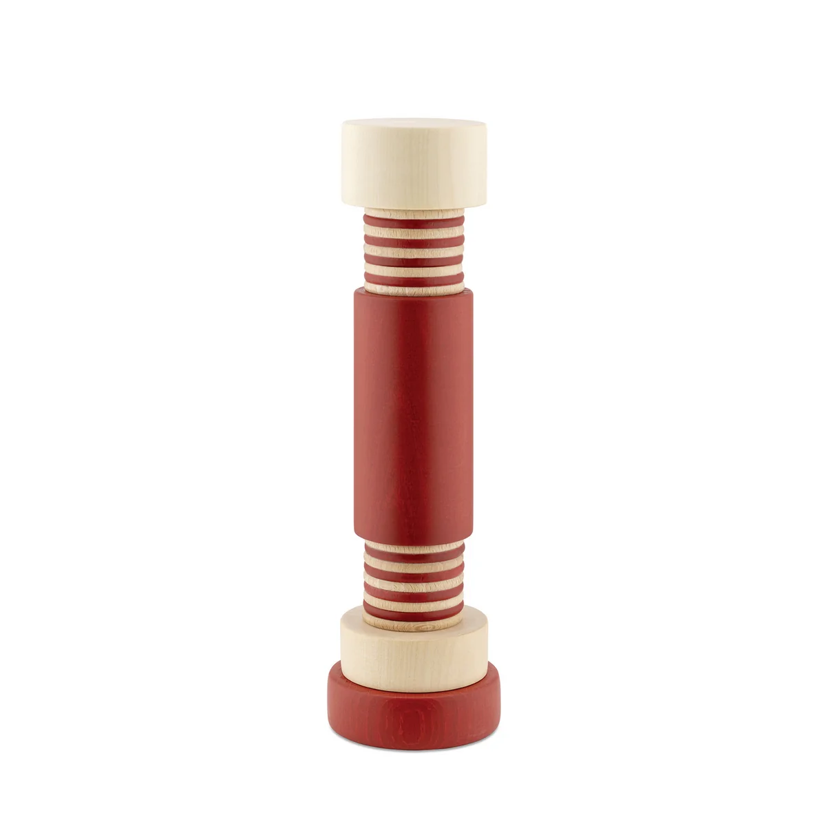 Salt-, pepparkvarn och kryddkvarn i lönnträ, naturfärgad och röd.