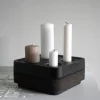 Köp Till Stumpastaken Fyran finns det att köpa till korkskål i naturfärgad eller svart kork, stumpaljus i flera färger och minivaser.