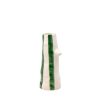 Vacker vas med näbb och ögonfransar. Den ljusa vasen är dekorerad med handmålade gröna ränder. Vasen sprider god stämning med sitt humoristiska uttryck och sina livsbejakande färger. Höjd: 26 cm.