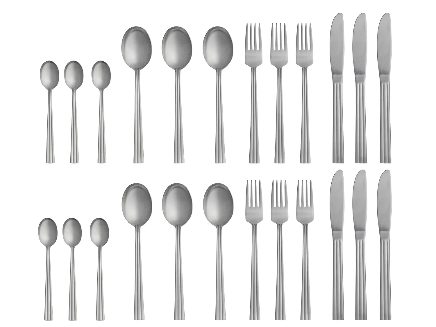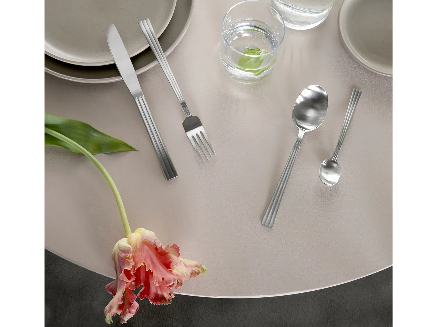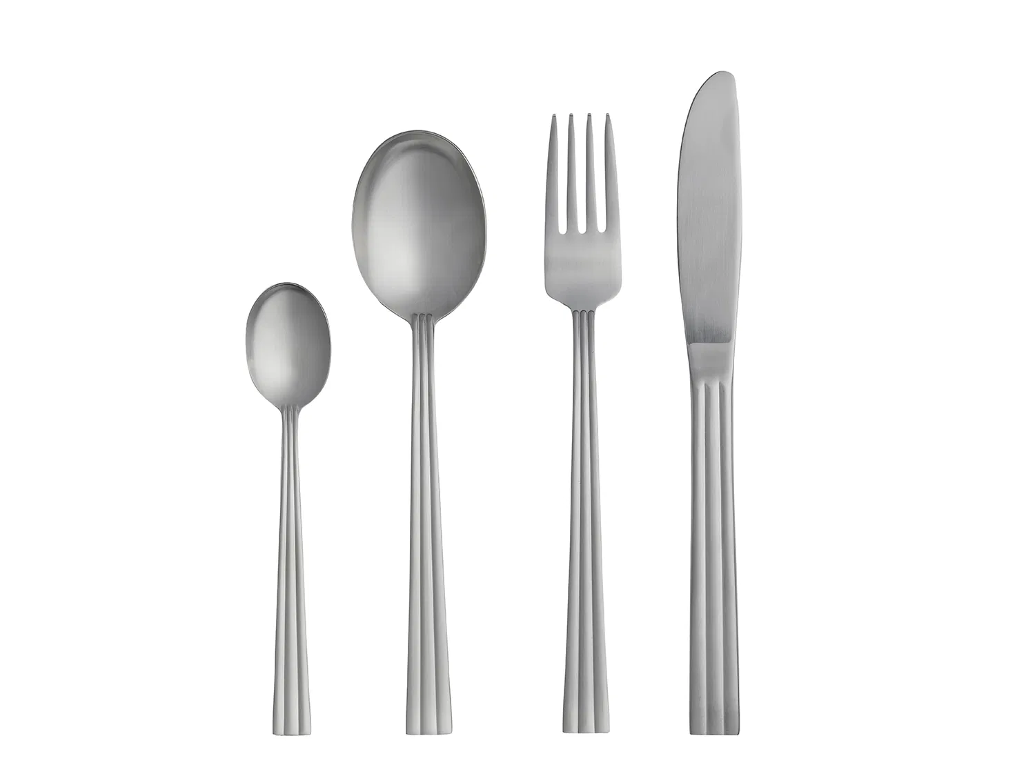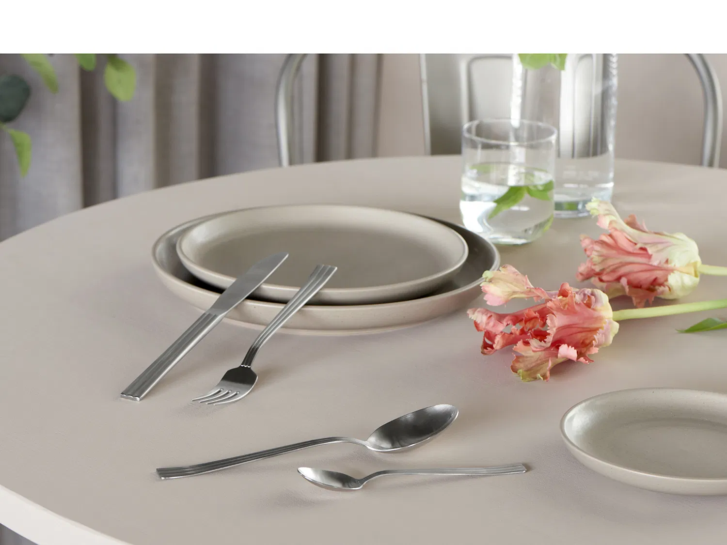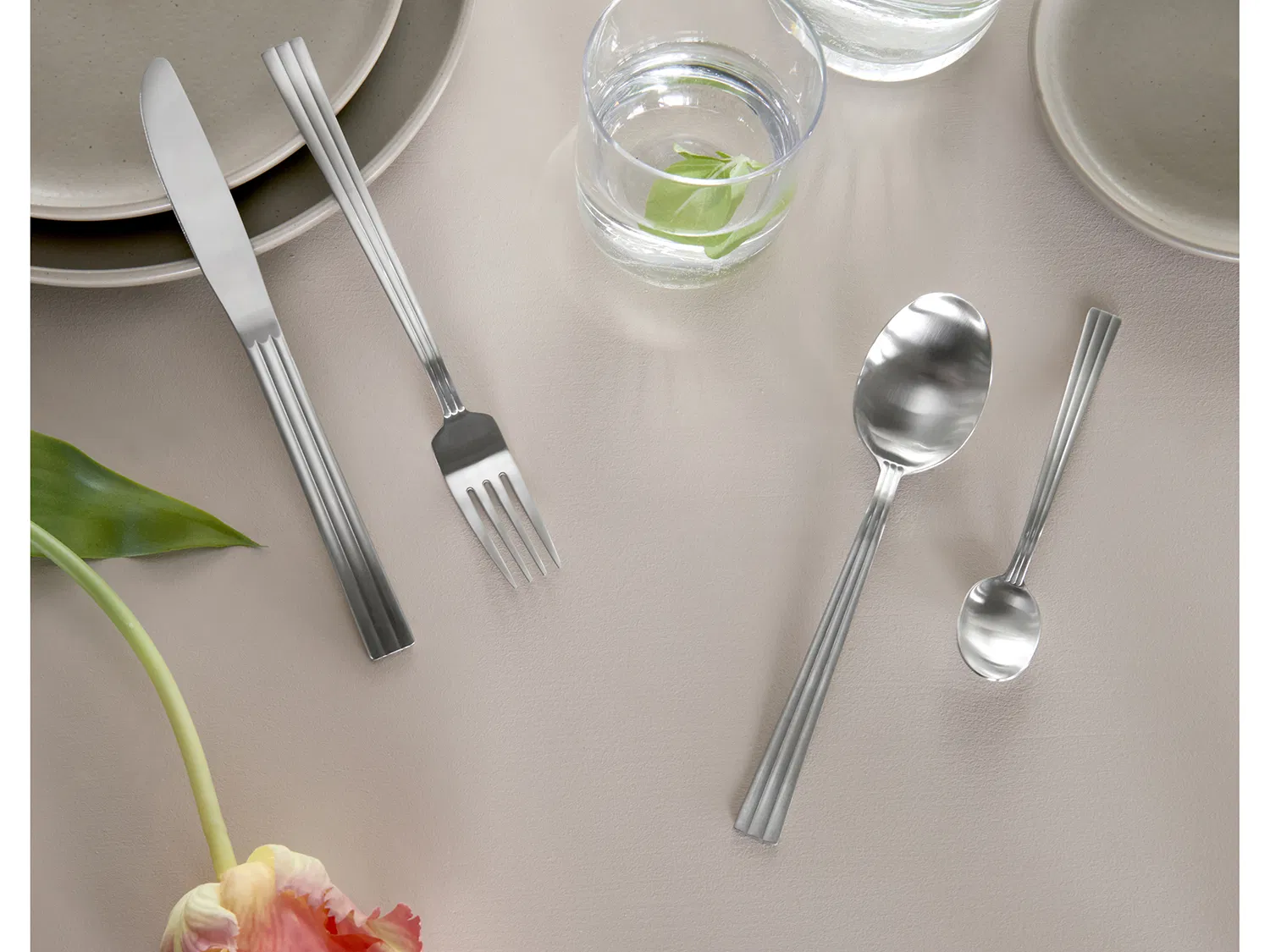 Setet innehåller: 6 st Bordskniv Thebe 19,5 cm Matt stål 6 st Bordsgaffel Thebe 18,2 cm Matt stål 6 st Bordssked Thebe 18,2 cm Matt stål 6 st Tesked Thebe 13,1 cm Matt stål Thebe har en klassisk och tidlös form som gör att besticket är lika vackert och modernt idag som när det skapades 1944. Thebe var Genses första moderna bestickserie i rostfritt stål och är inspirerat av den överdådiga egyptiska stilen med strama och eleganta linjer. Thebe år 2024 är anpassad till nutiden. Besticken är längre och i större harmoni med nutiden – längden på de enskilda bestickdelarna har ökat med cirka 10 %, och materialet är 91 % återvunnet rostfritt stål. Tål maskindisk. DESIGNED TO MAKE YOU PROUD