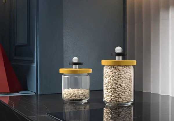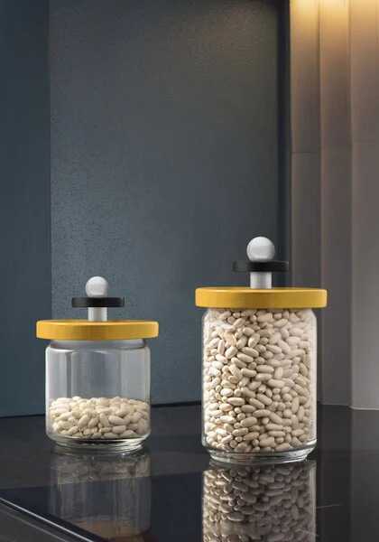 Twergi-kollektionen är en fantastisk uttrycksfull förvaringsburk skapad av legendariska italienska designern Ettore Sottsass. Locket i bokträ är formad som en liten totem och säkerställer en lufttät förslutning för mjöl, socker, pasta eller vad du än gillar att förvara i en glasburk.
