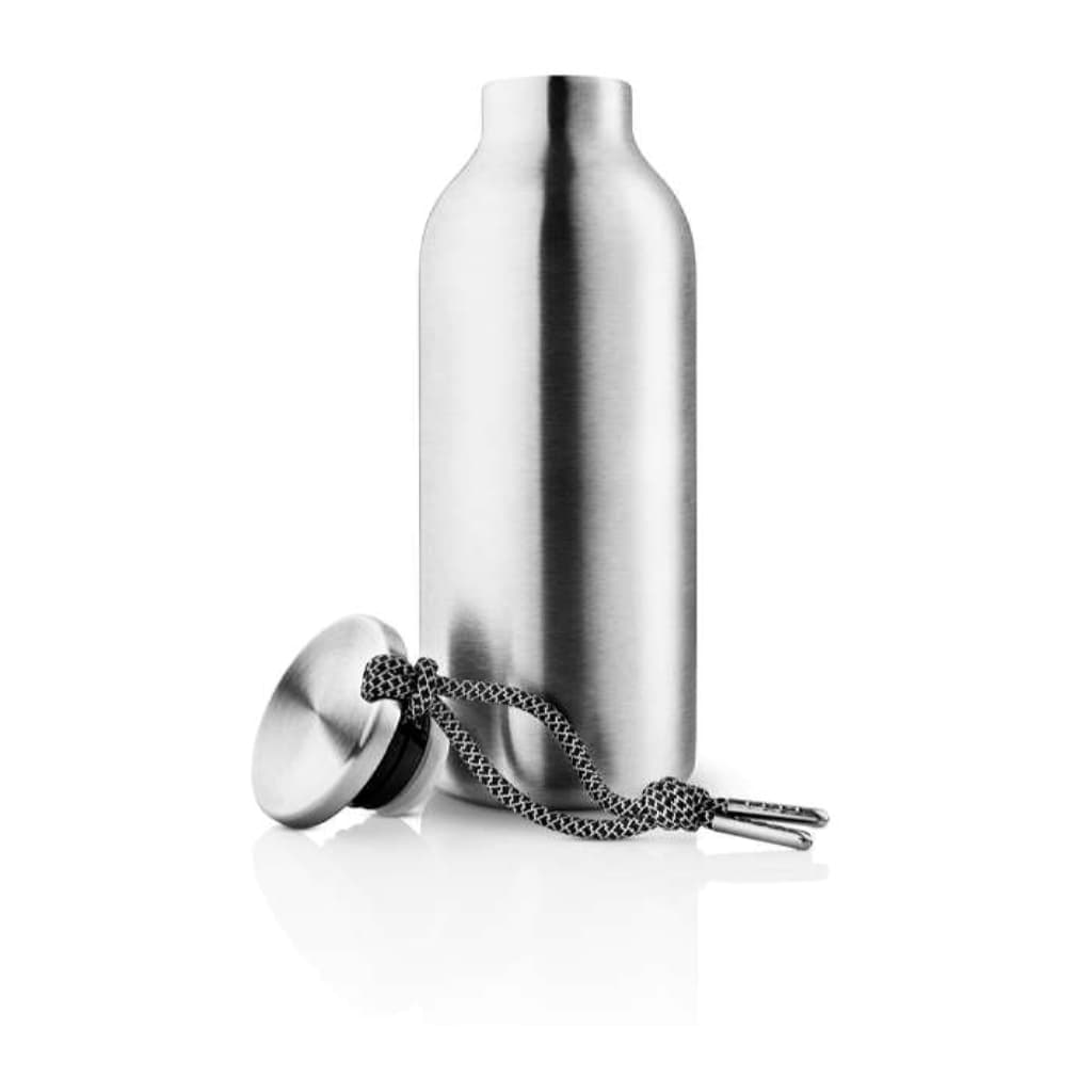 Robust termosflaska med skruvlock i stilren design. Flaskans termoskonstruktion håller temperaturen – kallt i upp till 24 timmar, varmt i upp till 12 timmar. Skruvlocket är 100 % tätt så att du kan ha flaskan i väskan, och en integrerad rem gör den smidig att ha med sig. Själva flaskan är dessutom tillverkad av rostfritt stål, som verkligen håller för vardagens slitage och användning. Tål maskindisk. Tillverkad av rostfritt stål, plast och nylon. Mått: H: 19,5 x Ø: 7,5 cm (0,5 liter).