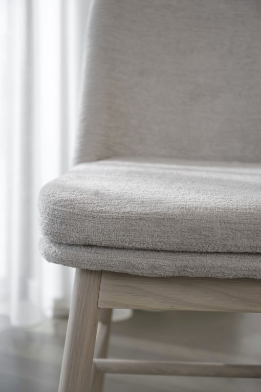 Amesbury stol med svarvade massiva träben i vitpigmenterad ek ger en naturlig elegans till ditt hem. Stolen är klädd med ljusbeige tyg som har fin struktur och är otroligt mjukt, samtidigt som det är väldigt slitstarkt. Tack vare den tjocka dynan, som dessutom är löstagbar, kan du sitta bekvämt under långa middagar och njuta av varje ögonblick. Finns även med träben i lackad ek samt brunlackad ek. Säljs endast i 2-pack.