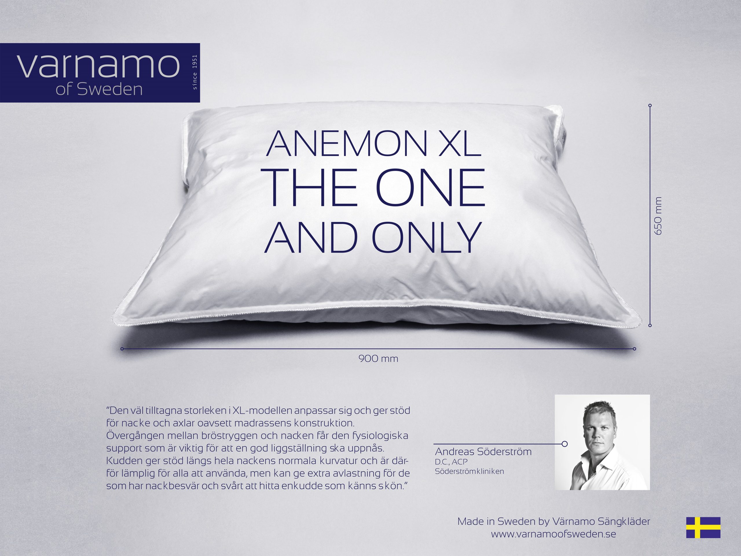 ”Den väl tilltagna storleken i Anemon XL-modellen tillsammans med kvalitén gör att kudden anpassar sig och ger stöd oavsett madrassens
