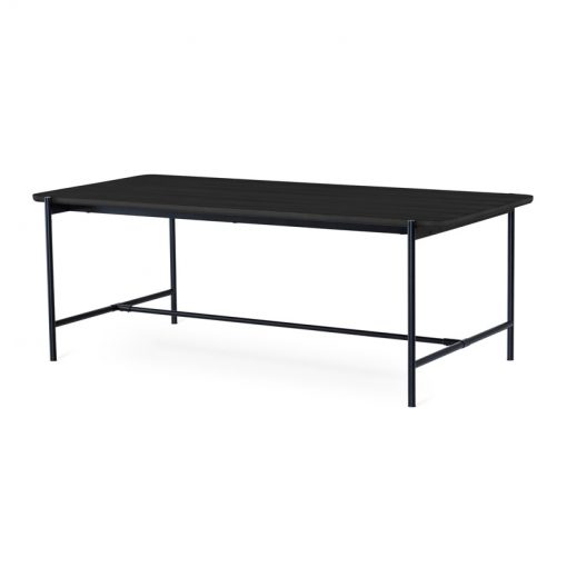 Matbord med skiva i fanérad svartbetsad ek matt lack. Underrede i svart metal