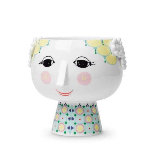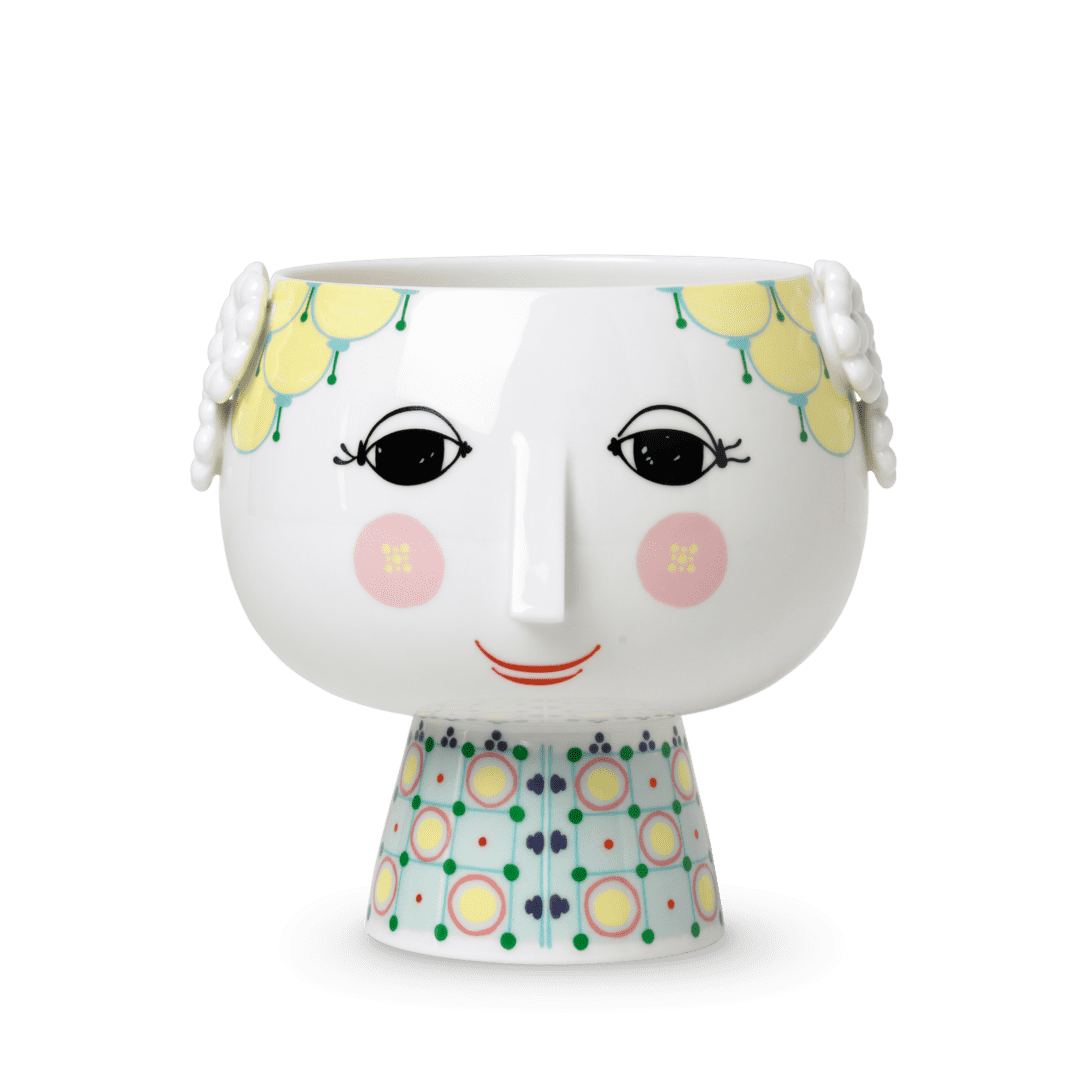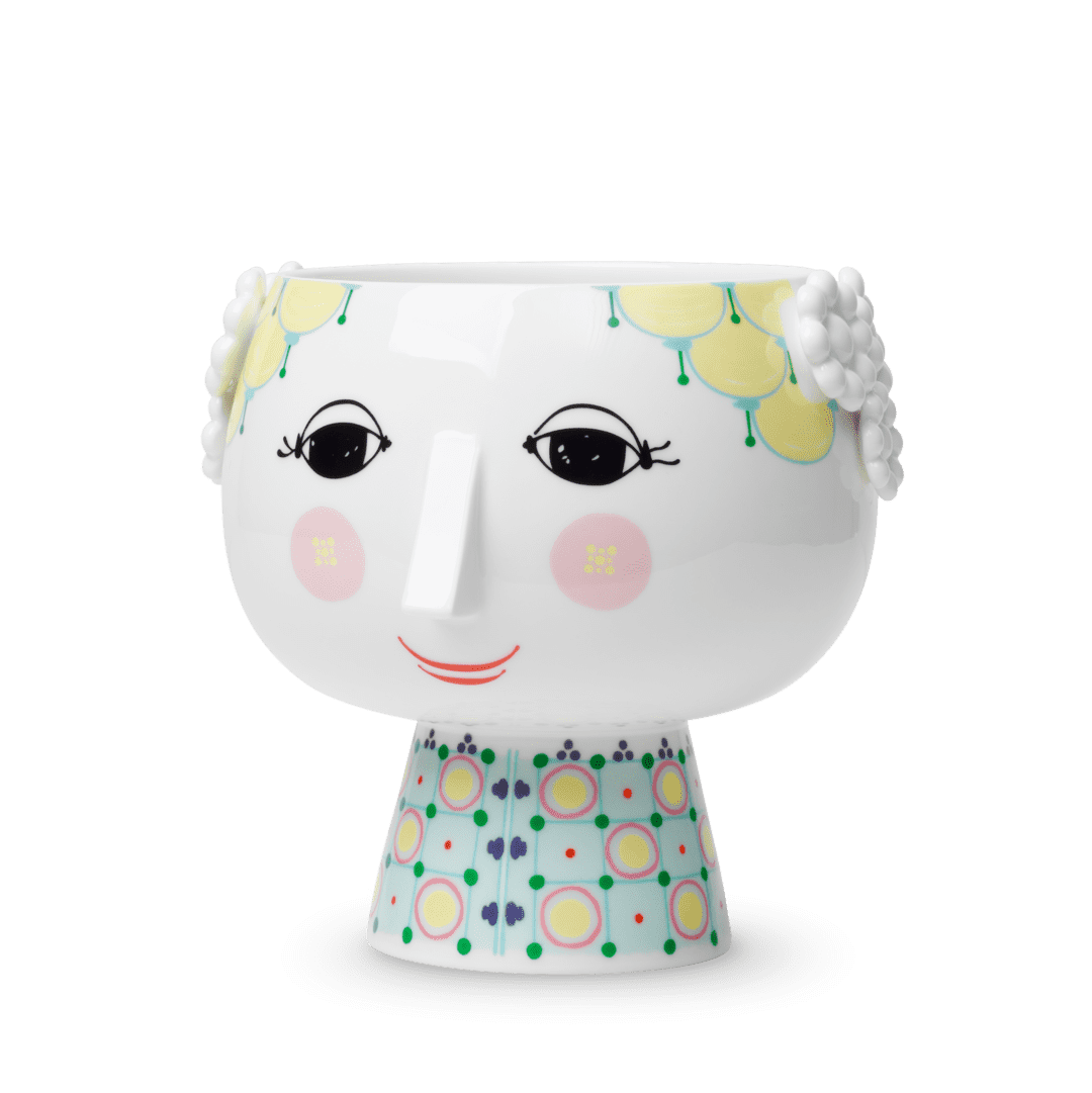 Denna version av Bjørn Wiinblads berömda växtkruka föreställer Eva, på en vackert dekorerad bas. Den kommer att lägga till en touch av retrocool till ditt hem med sin eleganta hals och det charmiga kvinnliga ansiktsmotivet. Du kan använda den här växtkrukan med bas för allt från örter till ljung, vita julrosor och trendiga kaktusar för att lyfta fram 1970-talsnostalgin, som återigen är ett stort inslag i dagens inredningstrender.