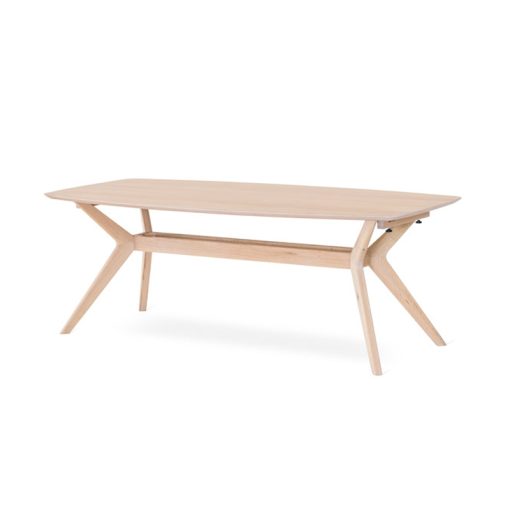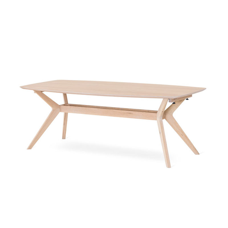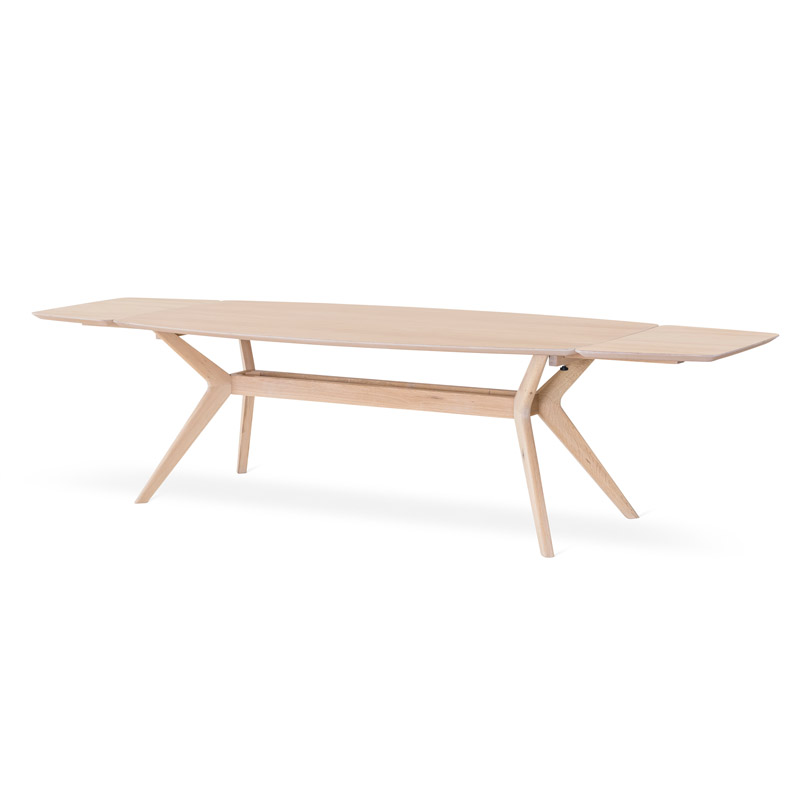 Hampton matbord L 210 B 100 H 75 cm. Bordsskivan är i fanerad och benen är massiv vitoljad ek. Bordet kan förlängas med två tilläggsskivor till hela 310 cm.