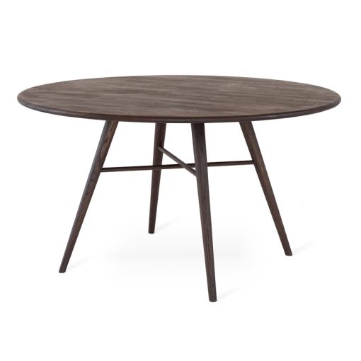 Löderup är ett runt matbord i massiv ek som har fått en rökoljad ytbehandling. Bordet andas hög finish där den rundade kanten på toppskivan möter de svarvade benen i fulländad harmoni