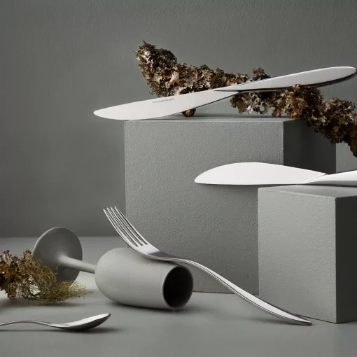 Designad av Odd Leikvoll 2014. Naturinspirerad design med ett modernt men samtidigt klassiskt uttryck, hämtad från vågskvalp från Hardangerfjorden. Balanserad vikt för bra grepp. Polerad finish. Levereras i presentförpackning.
