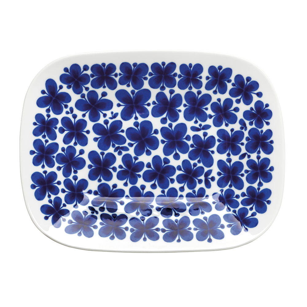 Det imponerande koboltblå Mon Amie-serveringsfatet (22 x 28 cm) är det nostalgiska valet för servering av alla slags läckerheter. Motivet med en skvattram som Marianne Westman skapade på 1940-talet illustrerar moderna former. Använd det som uppläggningsfat för att ge en känsla av fest vid varje tillfälle.
