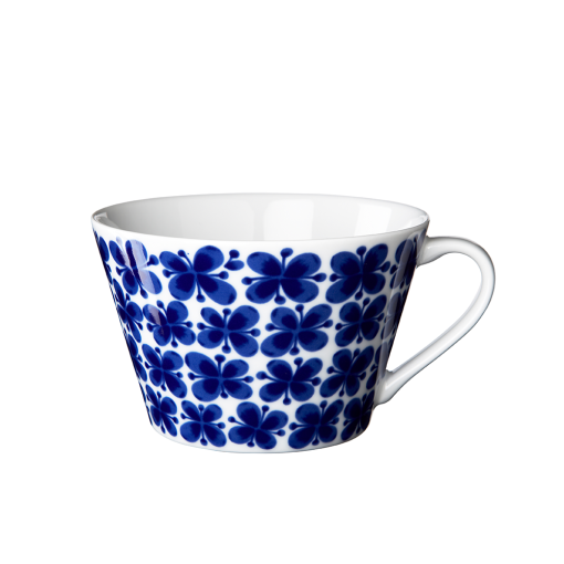 Denna stora koboltblå Mon Amie-tekopp (50 cl) med öra är det nostalgiska valet för te och även för små portioner soppa. Motivet med en skvattram som Marianne Westman skapade på 1940-talet illustrerar moderna former. Den stora muggen har en multifunktionell form. Mon Amie är ännu i full blomning och lyser upp alla tillställningar.