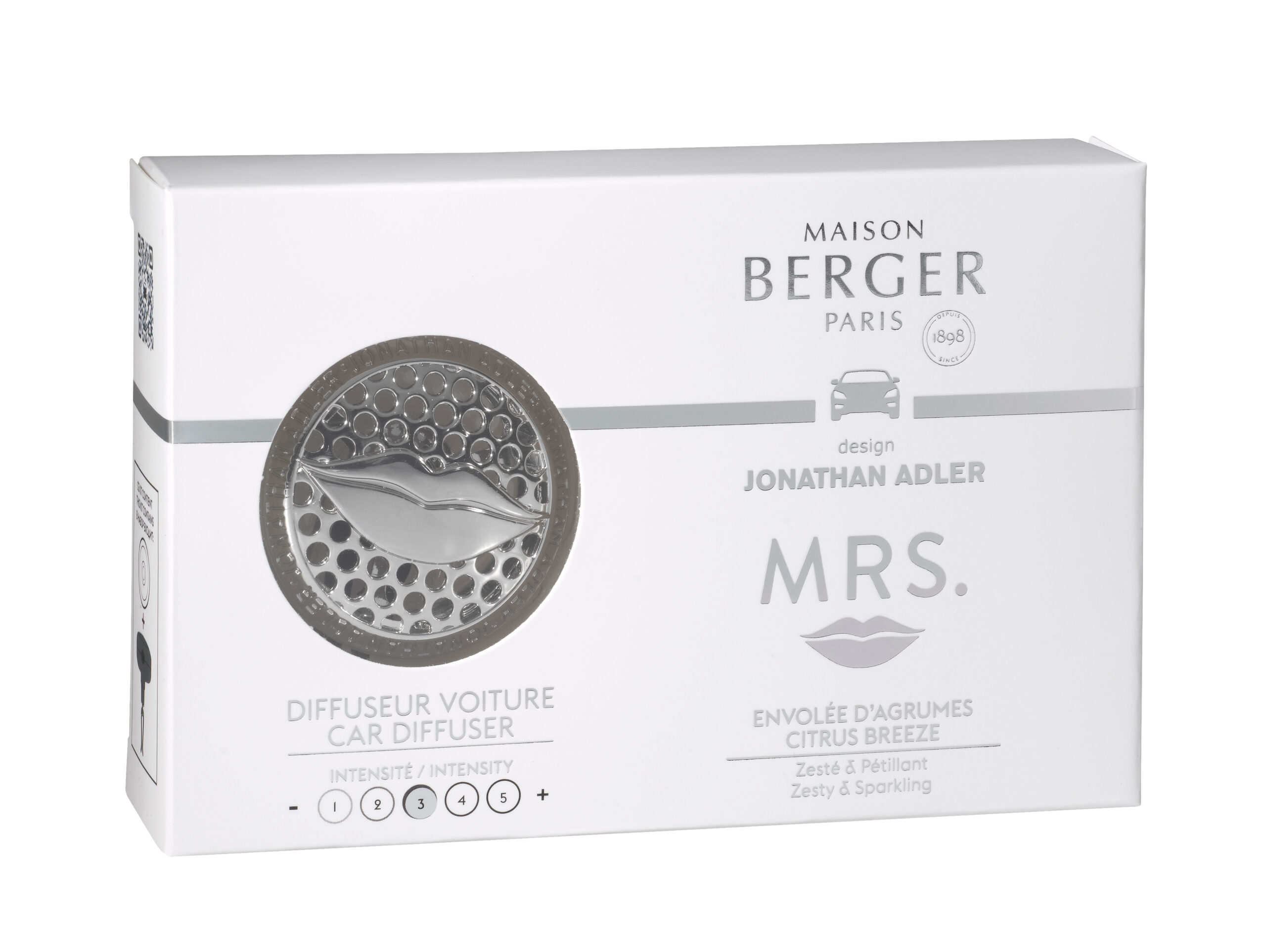 Det här är en komplett bildoft med en fälg / behållare som man sätter i bilens fläkt. Det ingår en doft av keramik. Doften i denna produkt är Citrus Breeze.