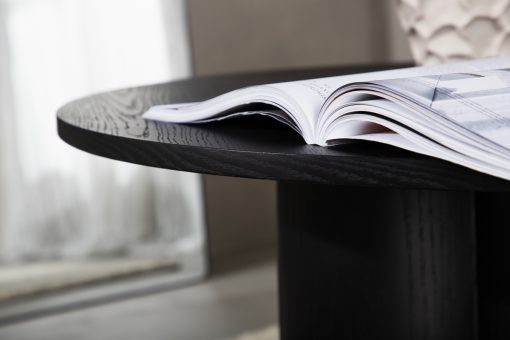 Ta din inredning till nästa nivå med ett soffbord som klättrar på trendlistorna! Olivia soffbord är tillverkad i svart MDF med faner och har en cylinderformad uppbyggnad vilket skapar en läcker dimension till bordet. Den runda toppskivan är fanerad och stommen utgörs av tre cylinderformade ben, samlade under bordets mitt. Bordet är otroligt användbart både som soffbord eller sidobord och den nätta storleken gör bordet enkelt att placera och flytta runt i hemmet. Här får du ett modernt sidobord som imponerar med sina mjuka former, stilrena design och trendsäkra kulör!