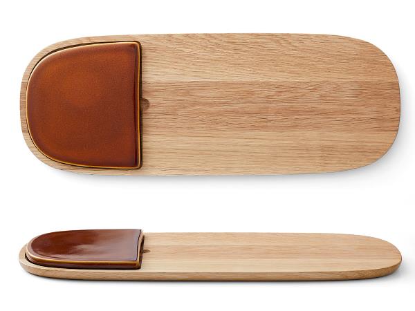 BITZ Serveringsbräda i ek med en löstagbar platta av stengods med blank amber glasyr. Elegant och användbar både som skärbräda och serveringsbricka för till exempel tapas och andra rätter. Mått 51 x 19 x 1,5 cm. Trädelen ska handdiskas medan stengodsplattan kan diskas i diskmaskin.