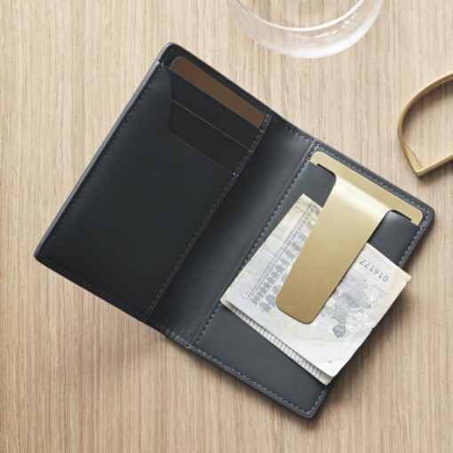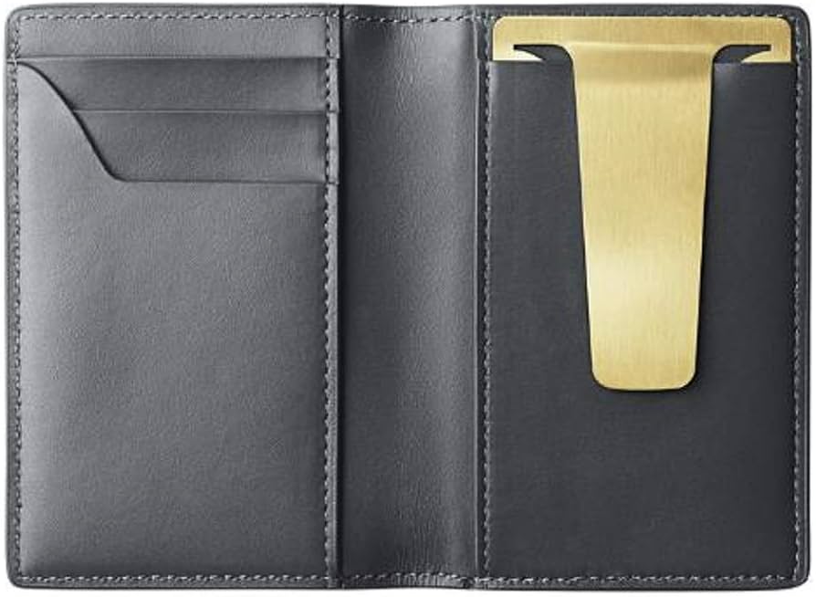 PVD-belagt rostfritt stål Färger: mörkgrått läder; klämma: matt guld