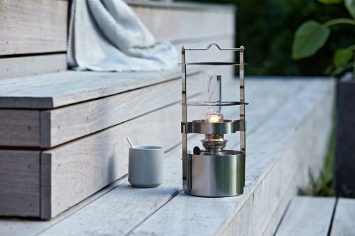 Denna Skeppslampa från Stelton designades år 1990 av Erik Magnussen. Skeppslampan är lika trevlig ute i trädgården som i båten eller i någon annan utemiljö.