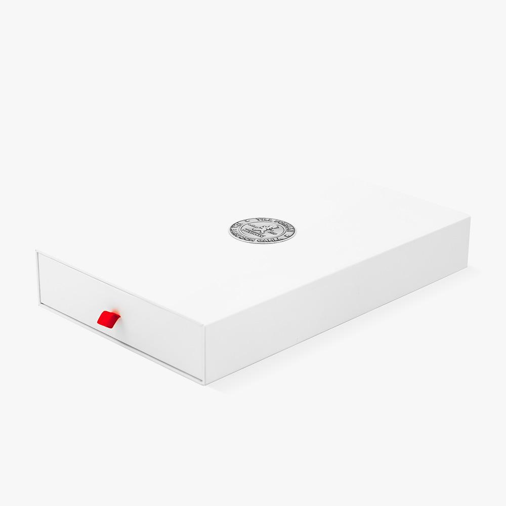 Brandfilt i stilfull stållåda med prägling av den klassiska Solstickepojken.