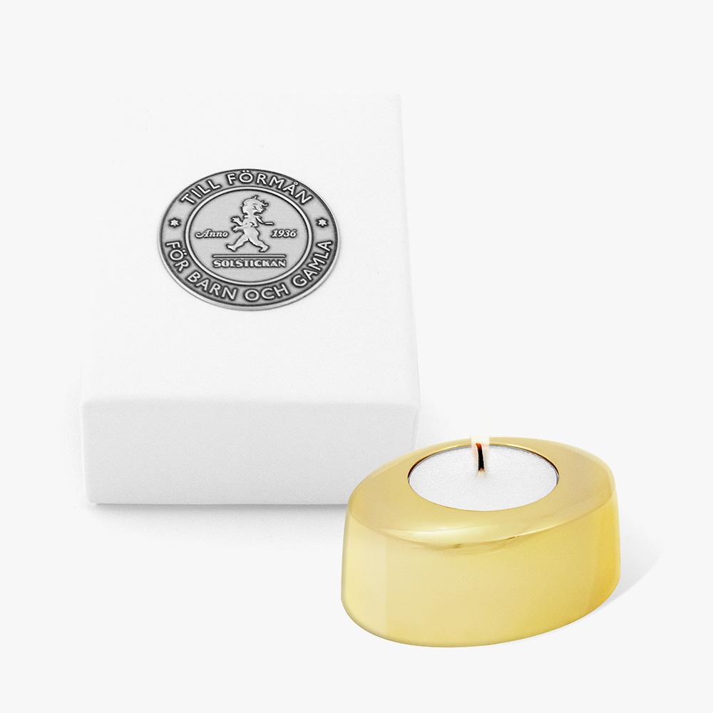 Stilfull ovalformad värmeljushållare i mässing. Ljushållaren levereras i en sammetspåse som är förpackad i en presentkartong. En förpackning innehåller 1st ljushållare.