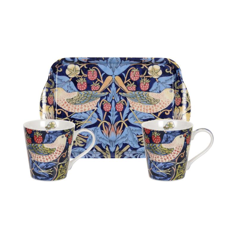 Brickan med handtag är i melamin och 2st muggarna rymmer 0,18L.
