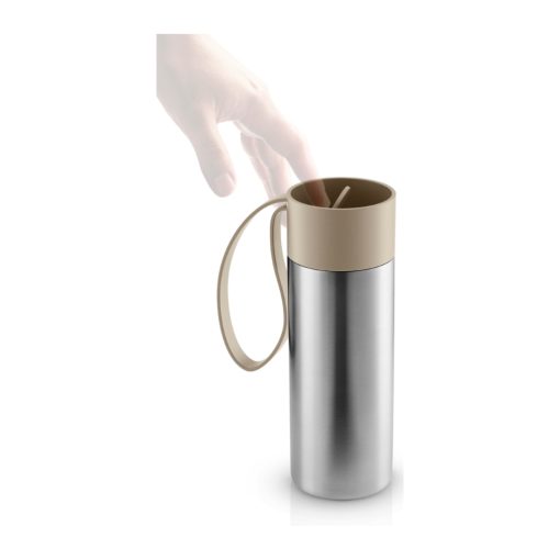 Den praktiska termosmuggen To Go Cup kan tas med överallt. Lätt att öppna och stänga i farten tack vare det funktionella locket med klickfunktion, som enkelt kan hanteras med en hand. Fyll To Go Cup med kaffe eller någon annan dryck – den håller värmen perfekt i upp till 6 timmar eller kylan i upp till 12 timmar, tack vare dubbla väggar med vakuumeffekt. Den praktiska bärremmen av silikon gör det smidigt att bära med flaskan så att du alltid har något att dricka nära till hands. 5 års garanti mot tillverkningsfel.