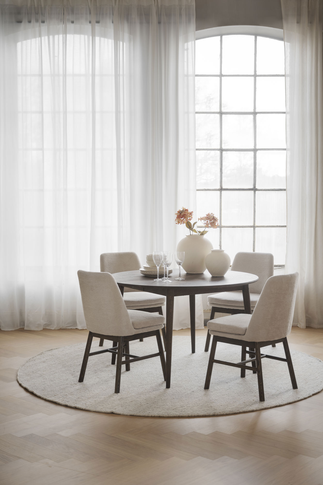 Tyler matbord Ø120 cm är ett runt bord i skandinavisk design som är tillverkad i Europa av massiv brunoljad FSC®-certifierad ek. En iläggsskiva ingår när man köper bordet och det går att köpa till ytterligare en iläggsskiva på 45 cm, vilket då ger ett matbord på hela 210 cm. Finns i flera storlekar.