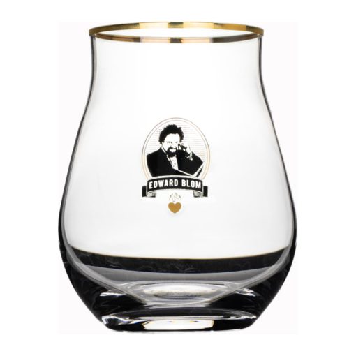 Edward Blom är gastronomen, kulturhistorikern och arkivarien som blivit känd som Sveriges främste livsnjutare. Med sin festliga framtoning och härliga stämma lämnar hans ordval ett starkt avtryck. Hans mest kända oneliners kan vi nu alla njuta av på en serie guldkantade öl-, whisky/tasting- och snapsglas.