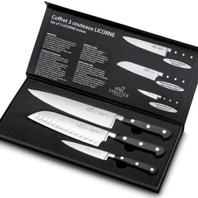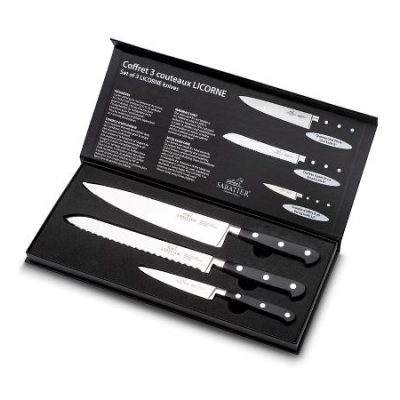 Knivset Licorne 3 delar Stål/Svart Ört/Kock/Brödkniv Lion Sabatier International